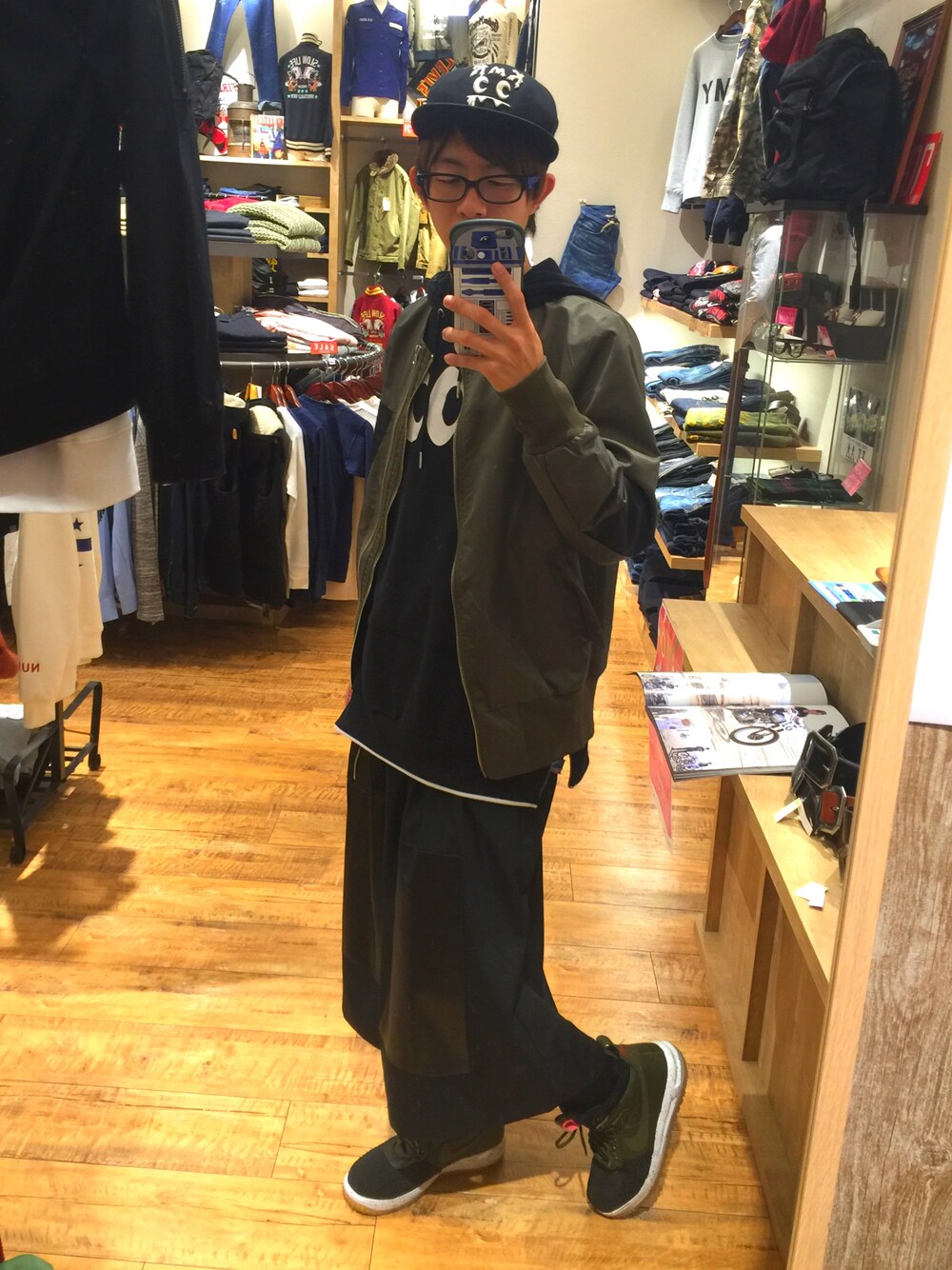 1つ前のコーデのダブルブラックワイドプリーツMA-1パンツバージョン! 程よい緩さでミリタリーとモノトーンの絶妙なバランスのオススメコーデ