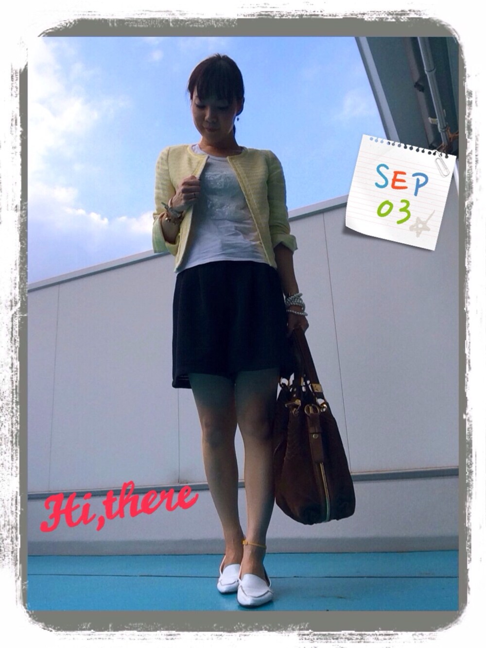 初めて外で撮ってみました♪ 今日はクライアント対応のため、少々かっちりとノーカラージャケットを着用。 夏コーデを秋らしくするために茶スエードのバッグを投入&足元にマスタードイエローの差し色を入れてみました。 本日のタグにも乗っかって手元のみじゃらじゃら☻ カバンの金具もすべてゴールドで統一じゃらん。 いつも覗いてくださる皆さん、本当にありがとうございます!