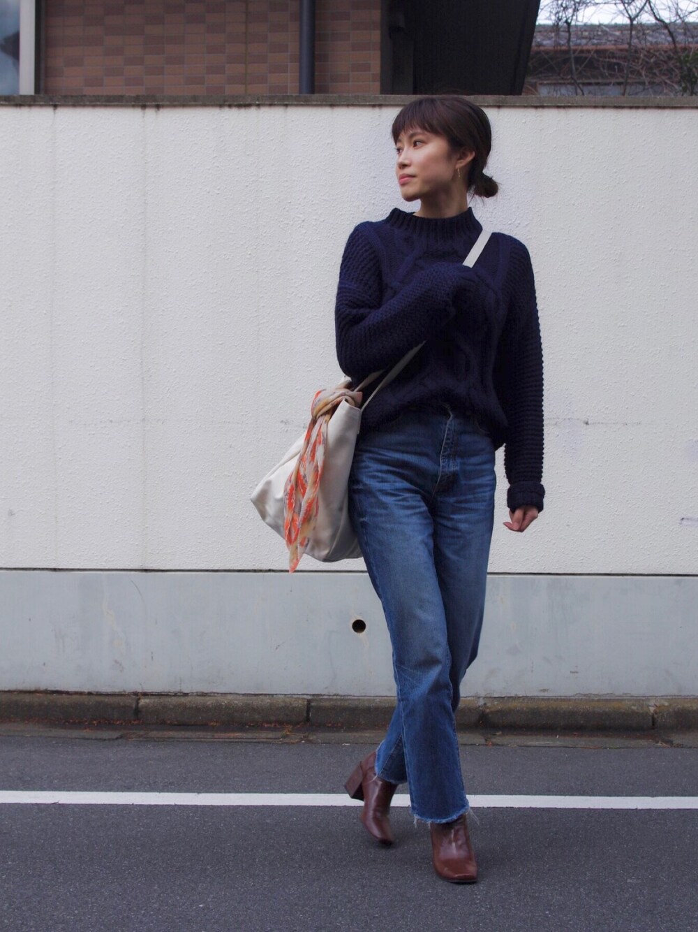 シェリエメのdropトートをショルダーにして、お気に入りのスカーフでアレンジ🧣