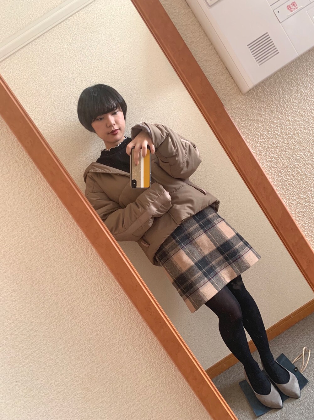 ベージュと黒でトーン統一。 もう寒い、、ダウン必要、、 このカラーのダウンあんまりないから一目惚れして買ってしまった🥺