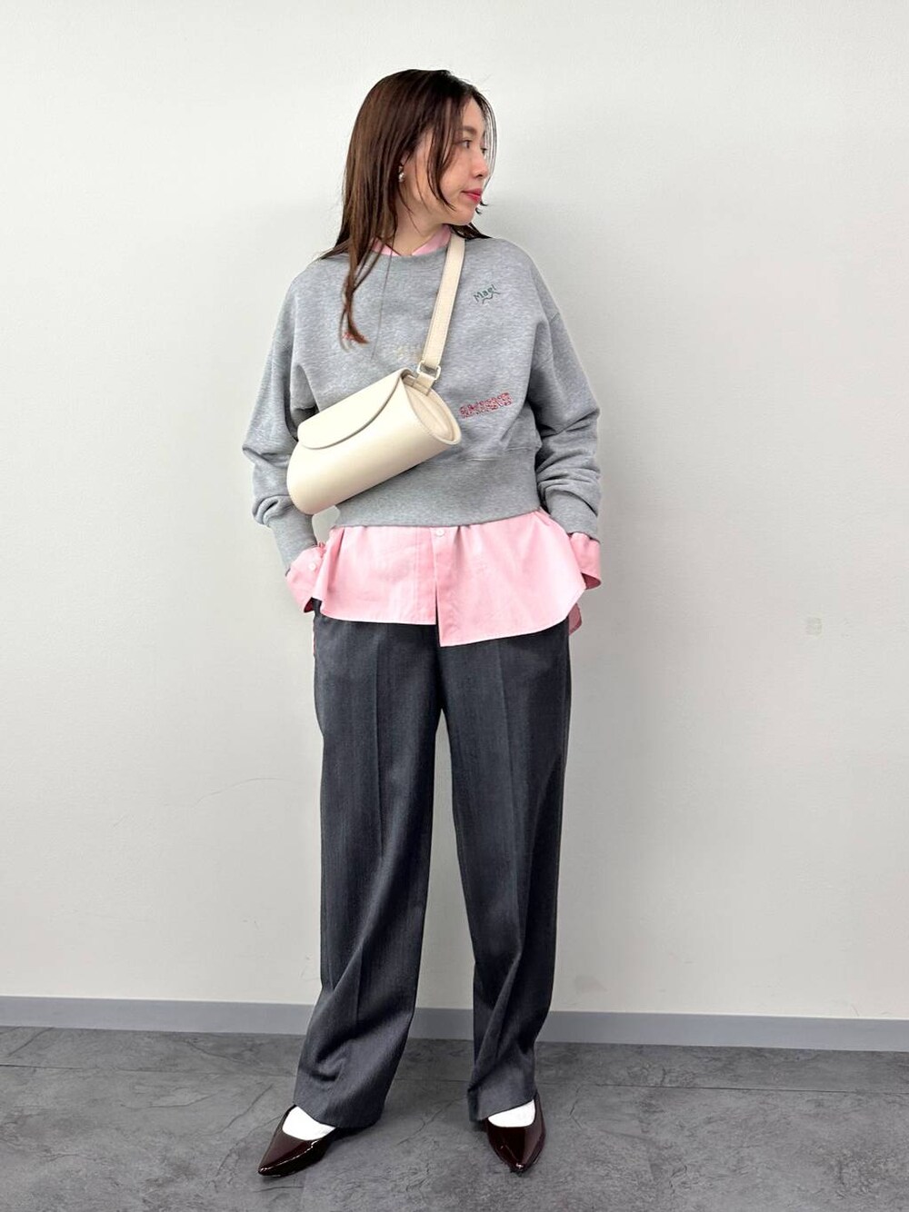 LaHutte 別注の短丈スウェット 刺繍の可愛さと長めシャツとレイヤードした時のバランスがおすすめポイントです♪ グレー×ピンクの合わせは永遠に好きなカラー パンツのグレーを濃いめにして秋冬っぽく^ ^ ご覧頂きありがとうございます! 気になるアイテムは一覧からチェックして下さい♪