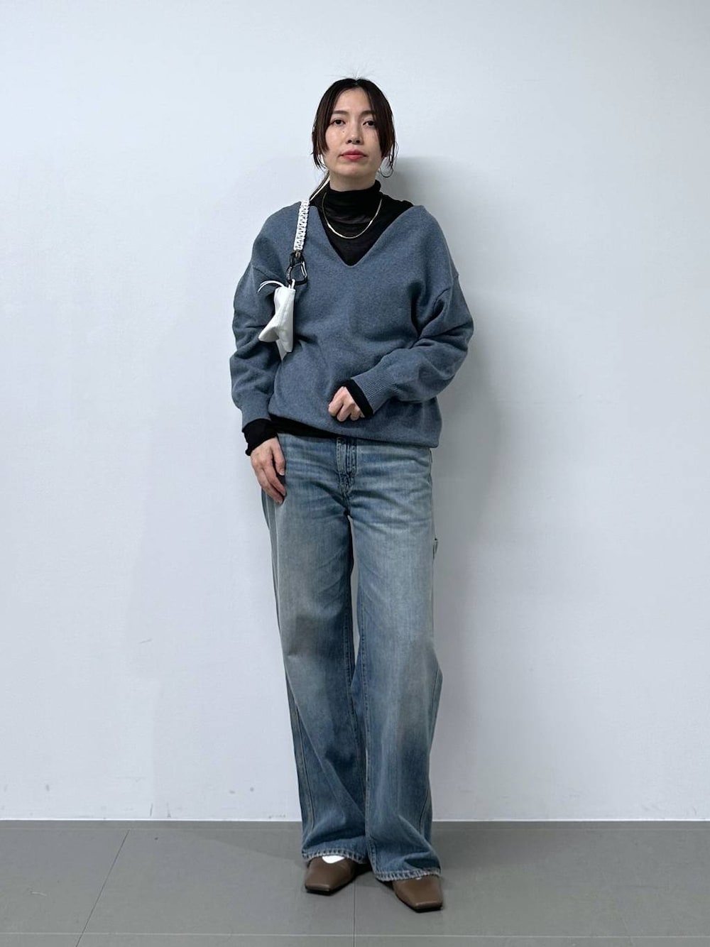 落ち着いたカラーの大人カジュアルコーデ 【ニット】 首元のキーネックが特徴のニット 抜け感が出るので、カジュアル度高めでも大人っぽく着こなせます! 綿多めの生地なので肌触りも良くちくちくしませんでした♪ インナーにシアータートルの黒を合わせてシックに^_^ カラーはブルー味強めのグレーなので落ち着いた印象です 【デニム】 size25 大人気のHAIKUREから新型が入荷✨ グッとこなれて見える色落ち具合と履きやすさがポイント! 前回のものより細めでスッキリとしたシルエットが脚長見せしてくれます!! 丈はフラットシューズを履いてぴったりでした^_^ ご覧頂きありがとうございます! 気になるアイテムは一覧からチェックして下さい♪