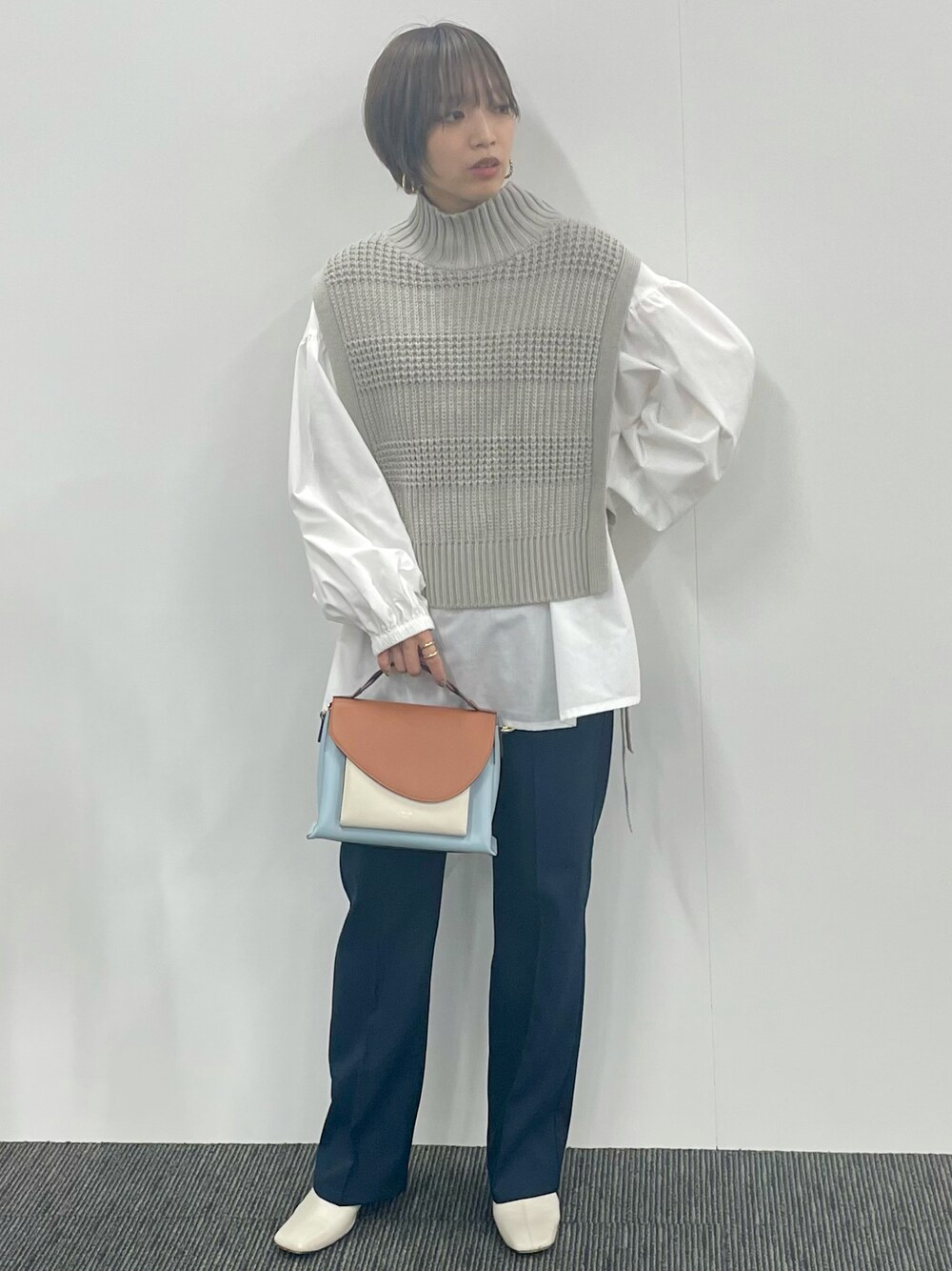 レザーチェーンのショルダーがこなれ感のあるバッグ◎ 配色がきれいなので、バッグを主役にコーデしました👗