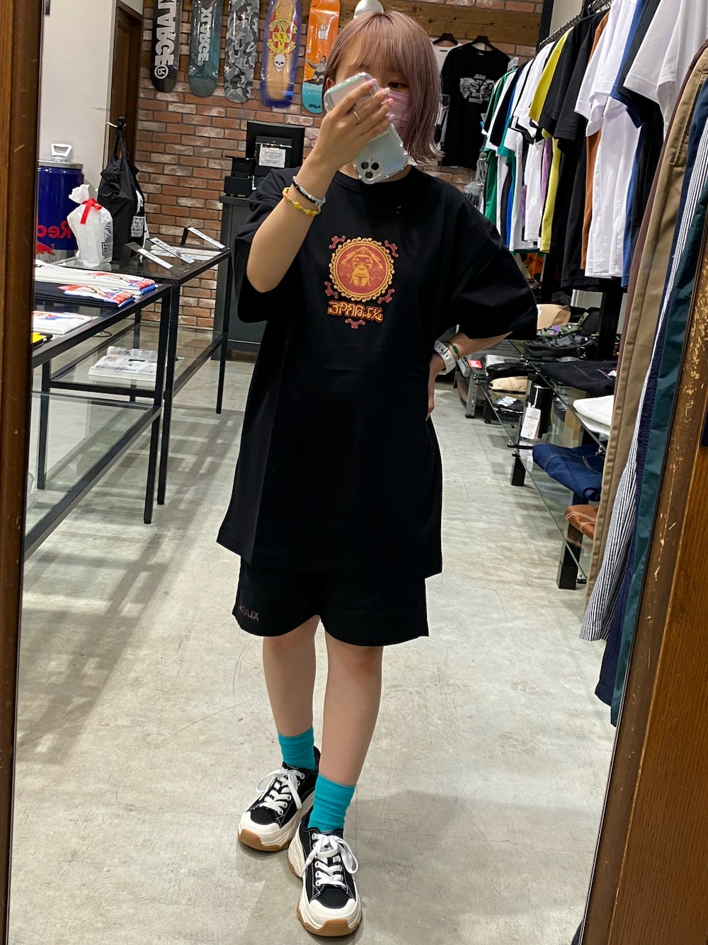 いつもハーフパンツ履く時はハーフパンツがSサイズ、TシャツMサイズのシルエットが好きだったけど、TシャツをLサイズに変えてみたらこれはこれでアリ。シルエットいい感じ◎