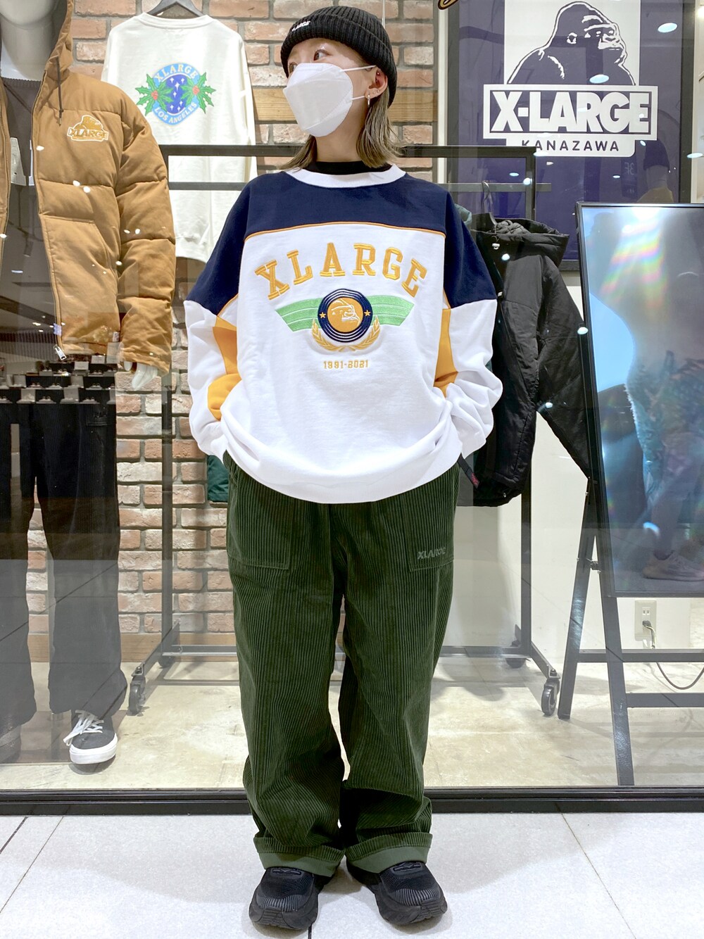 スウェットデザインにグリーンカラーあるので色合わせでパンツもグリーンに。コーデュロイ素材は冬感出てめちゃ好き◎