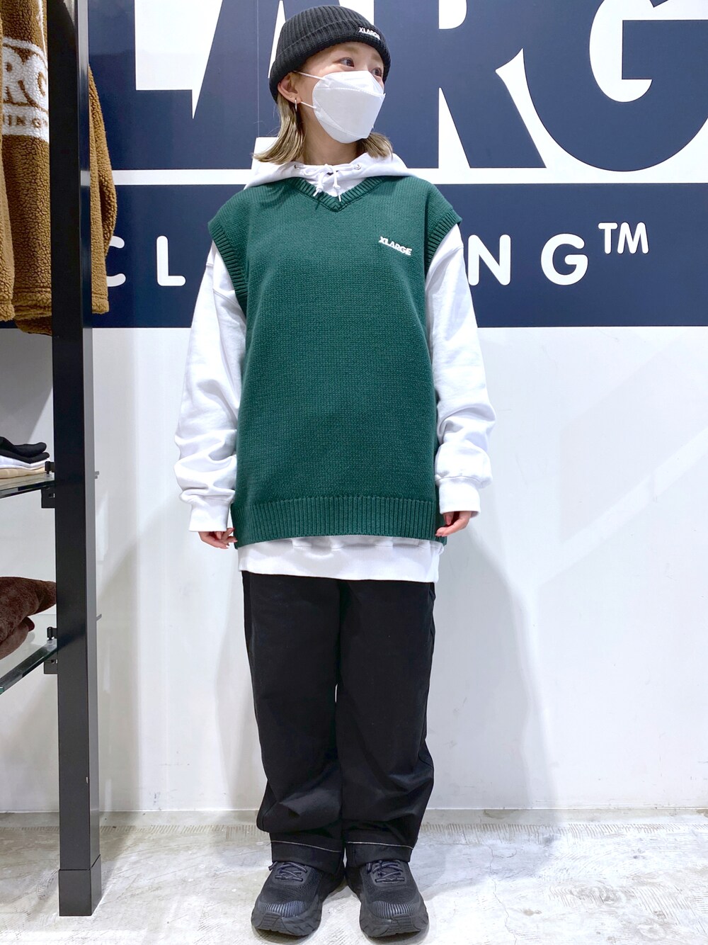 みっちゃんのベスト「STANDARD LOGO KNITVEST」を使ったコーディネート