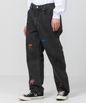 コラボのスウェットはNEWERAのサイズ感なので身幅はあまりなくて丈がちょい長め。袖ロゴあるのでTシャツとの重ね着もアリ◎パンツはそんなに太くないので女の子にもオススメ。パーマしたらメガネかけたかったので大好きなクリアメガネもかけてみた。