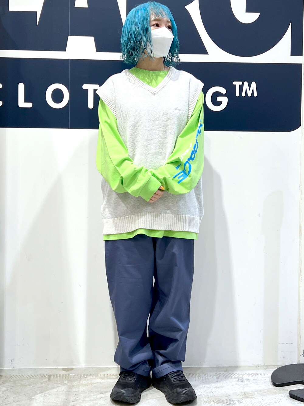綺麗めもストリートもなんでもこなせるベスト。ベストでカラーコーデ組んでみた。ベストにライトグリーンのロンTめちゃくちゃ相性いい◎