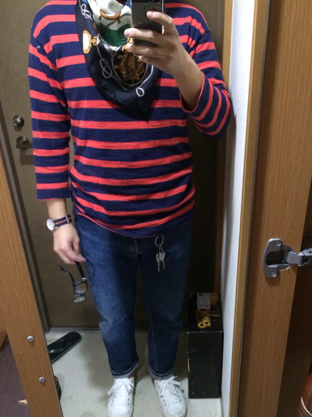 カットソー:GAP デニム:古着 スカーフ:Beauty&Youth スニーカー:無印良品 メガネ:TK メガネなんてめったにかけないのですが、久々に。 映ってないですがニット帽も装着してます