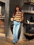 今年気になるラガーシャツコーデ🏉☆ ◼️トップス ・スウェットみたいな生地感でロンTよりは分厚い ・着丈は長めでお尻が隠れる ◾️パンツ ・ローライズでも履けるためウエストはやや大きめ ・腰で履いてもゆったりしたトップスと合わせても形が綺麗でスタイルが良く見えるのがポイント ・個人的には足元はミュールやつま先がとんがっている足元と合わせるのがオススメ