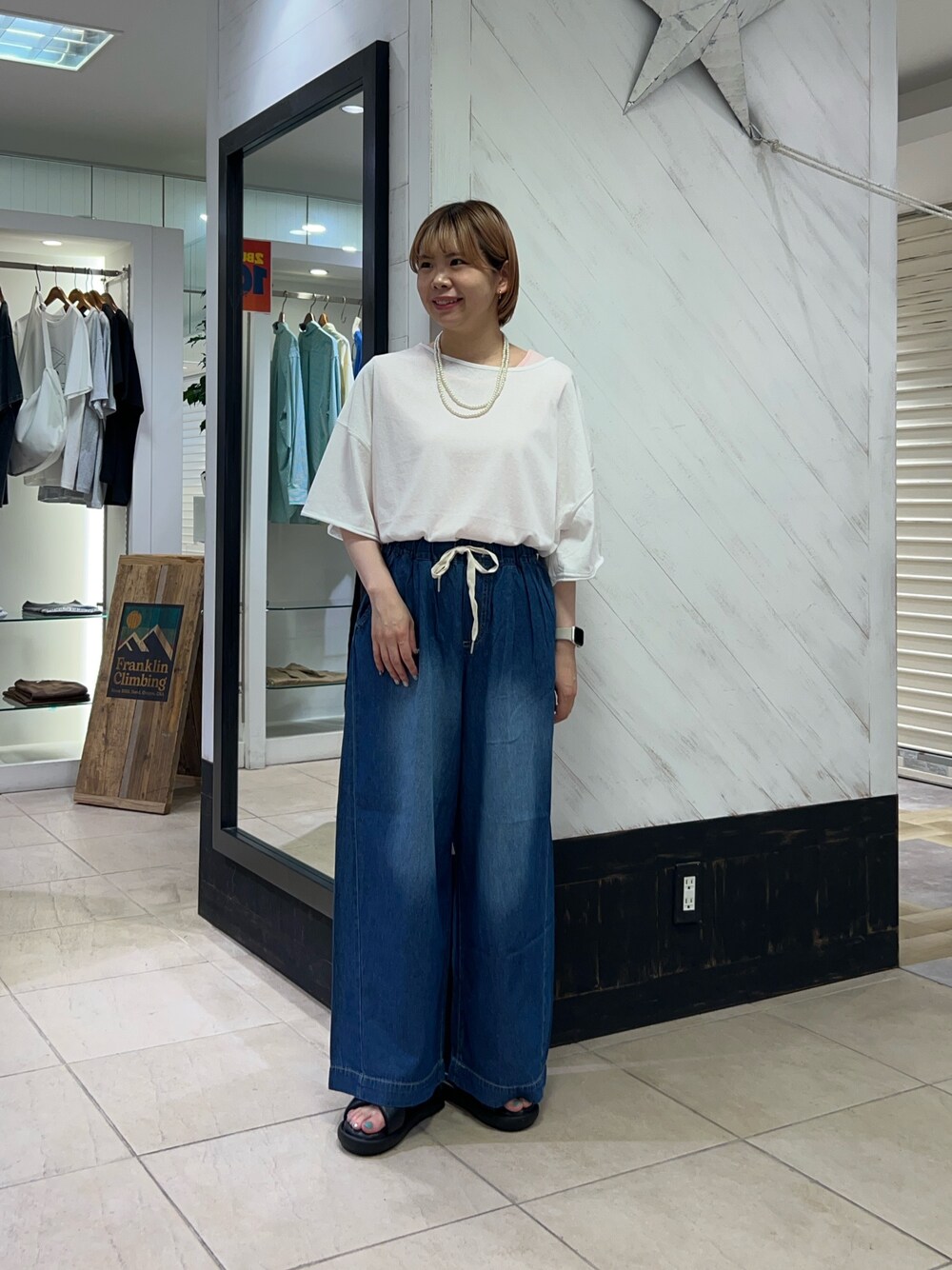mana(CIAOPANIC TYPY)のTシャツ/カットソー「シアースラブワンポイント刺繍オーバー半袖Tee」を使ったコーディネート