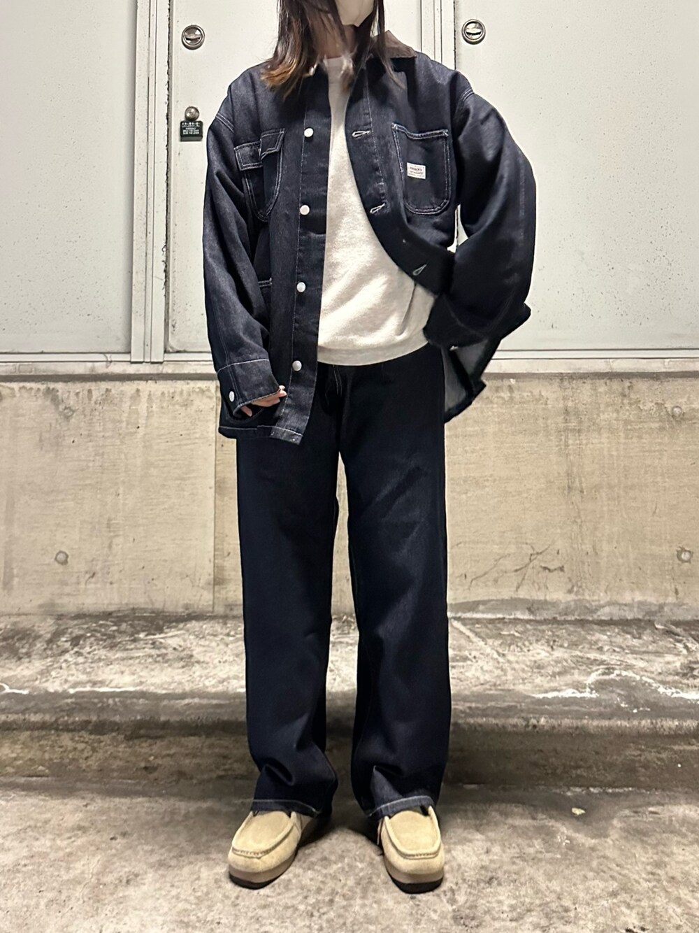 n a n aのデニムジャケット「【retock's】ロゴピスネーム コーデュロイ襟切り替えデニムジャケットカバーオール」を使ったコーディネート