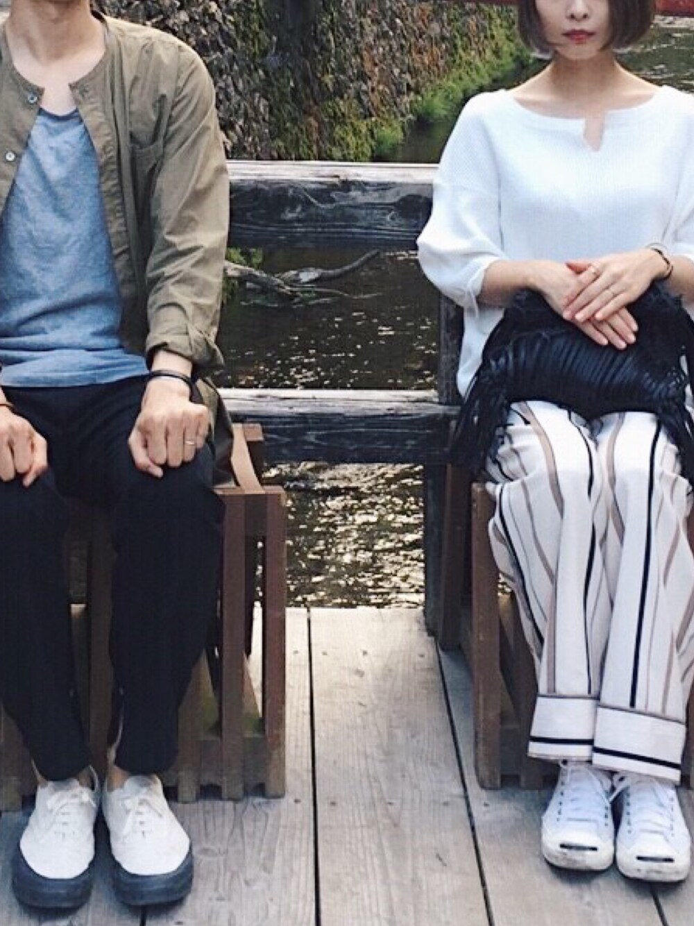 久しぶりに夫婦コーデ。 一昔前の家族写真風。