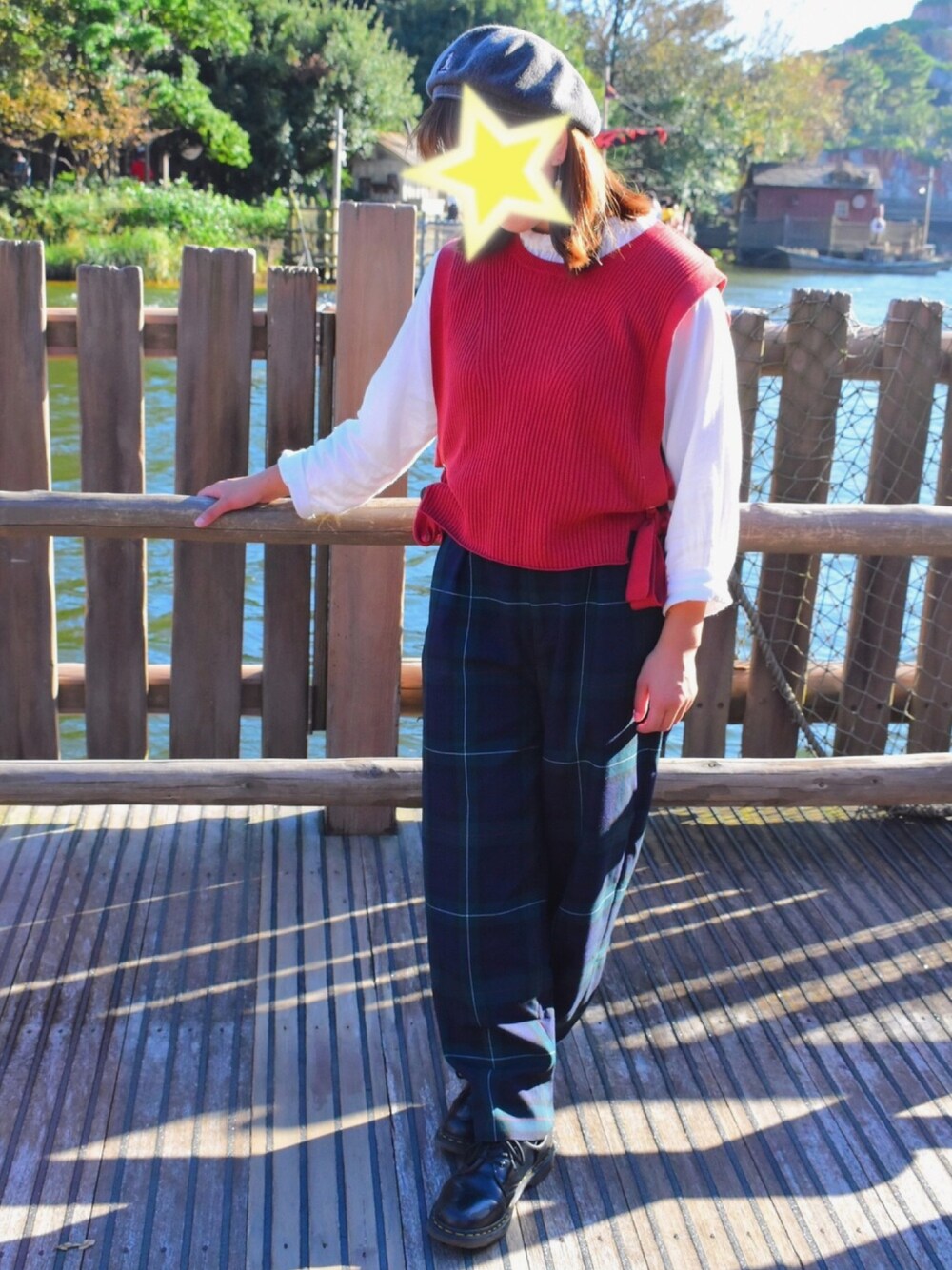 秋っぽいオレンジのノースリニット🍂 お気に入りのコーデです🍁