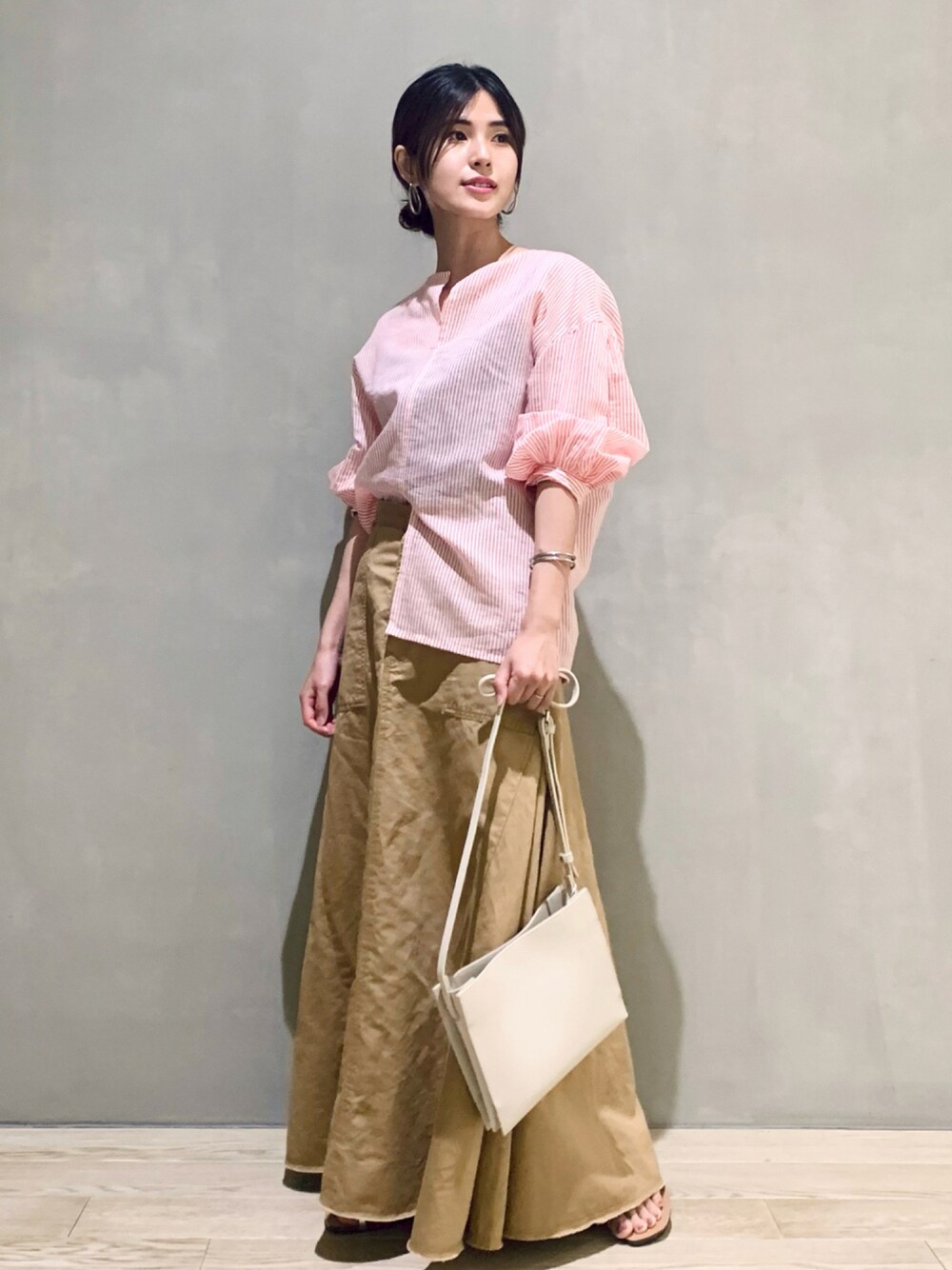 こんにちは! いつもご覧いただきありがとうございます😊 本日はストライプのシャツを 綿麻のスカートで合わせたカジュアルコーデ◎ Tシャツで合わせるよりも大人っぽく、 リラックス感あるスタイリングに。 Instagram▶︎▶︎ mayu__rougevif