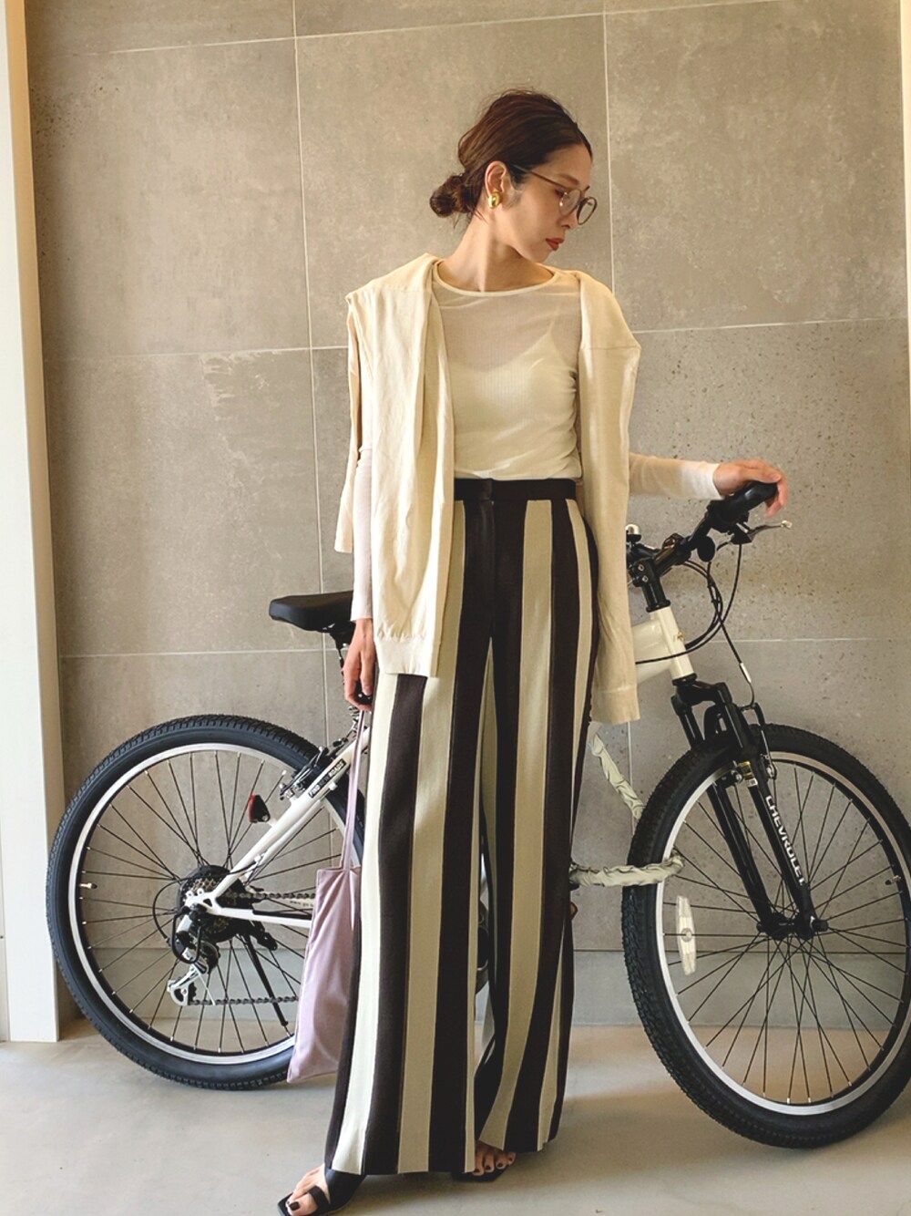 ストライプパンツは雰囲気あって好きです🤭 シアートップスが抜け感あって良き❣️ サンダルもヒールが高すぎず歩きやすいです。 いつもイイネありがとうございます✨ とっても嬉しいです🥰