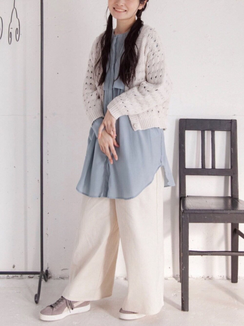 mysaliina(Mysa&Liina)のカーディガン/ボレロ「メッシュスカシ柄ニットカーディガン」を使ったコーディネート