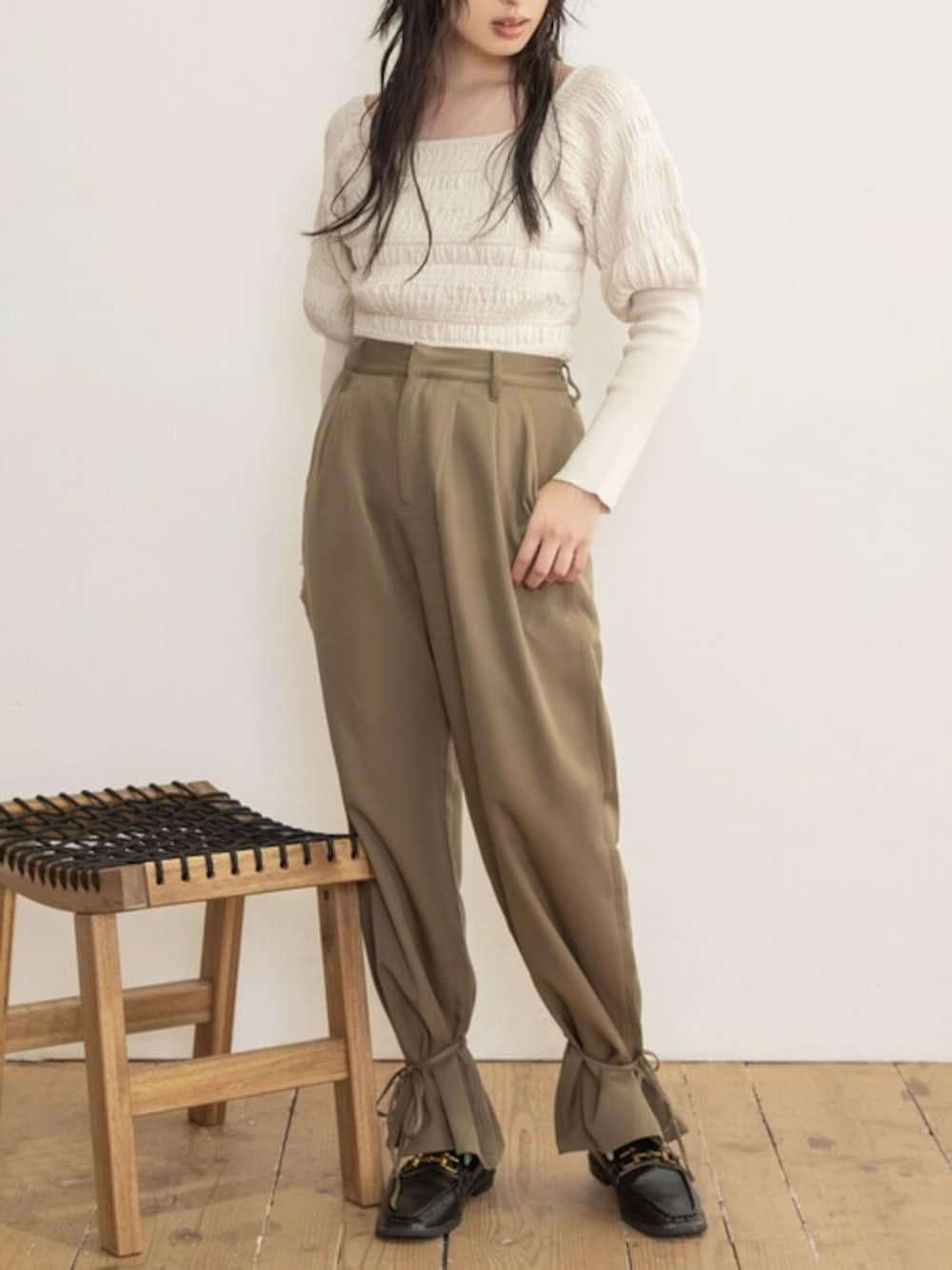 mysaliina(Mysa&Liina)のスラックス「裾リボン2WAYパンツ」を使ったコーディネート
