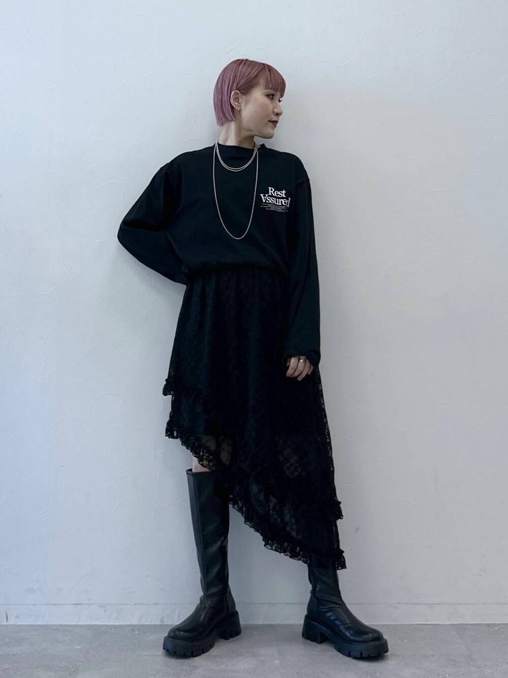 ご覧頂きありがとうございます☺︎ 〖プロフィール〗 身長157cm 骨格ウェーブ アシメデザインが可愛いレーススカート☺︎ モノトーンまとめがおすすめ◎ 気になったアイテムは下のアイテム欄からチェックしてみてください! 最後まで見てくださりありがとうございます! 是非フォローお願いいたします◎