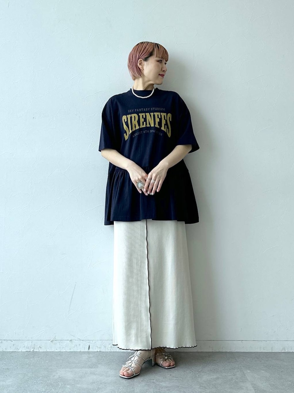 たけお(RAGEBLUE 本部)のTシャツ/カットソー「カレッジロゴプリント/ぺプラムTシャツ」を使ったコーディネート