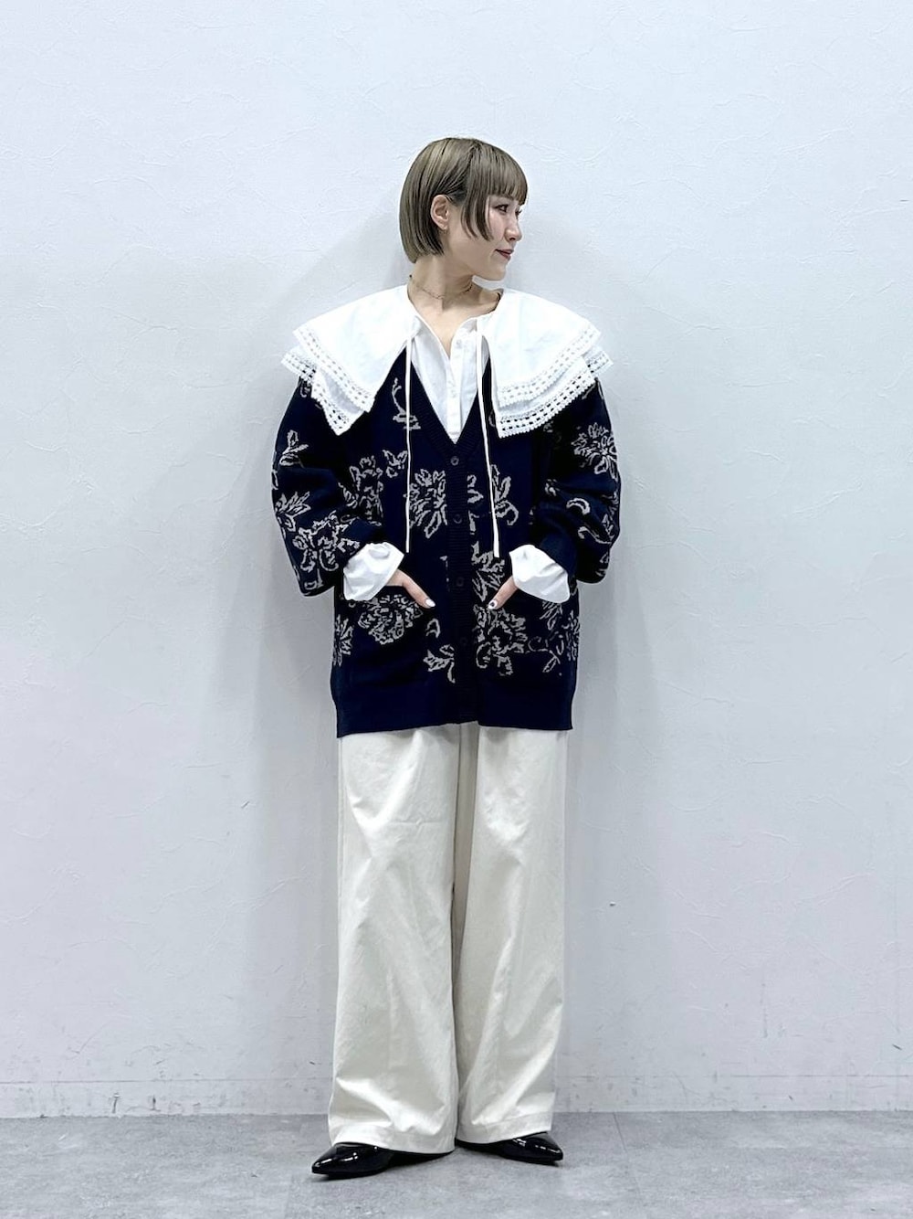 ご覧頂きありがとうございます☺︎ 〖プロフィール〗 身長157cm 骨格ウェーブ フラワー柄がシックでかわいい新作ニット☺︎ フリル襟をレイヤードして少し甘めに◎ 気になったアイテムは下のアイテム欄からチェックしてみてください! 最後まで見てくださりありがとうございます! 是非フォローお願いいたします◎