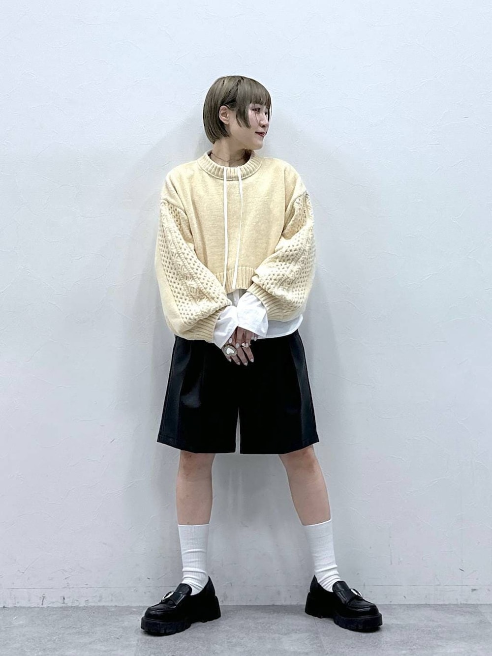 たけお(RAGEBLUE 本部)のニット/セーター「ボリュームスリーブ/袖ラインモールニット」を使ったコーディネート