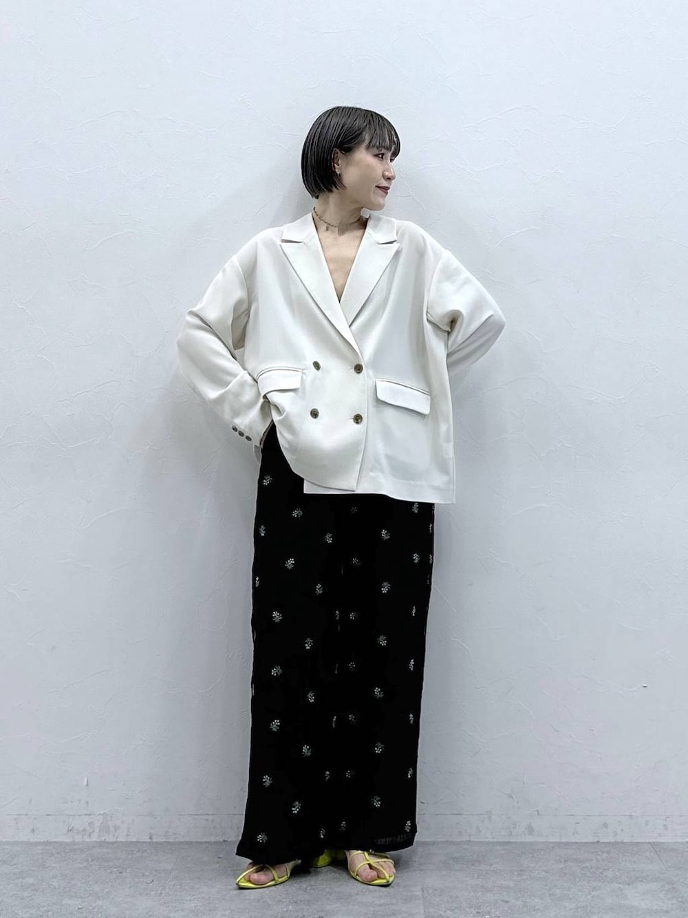 たけお(RAGEBLUE 本部)のスラックス「フラワー刺繍/シアーパンツセットアップ対応」を使ったコーディネート