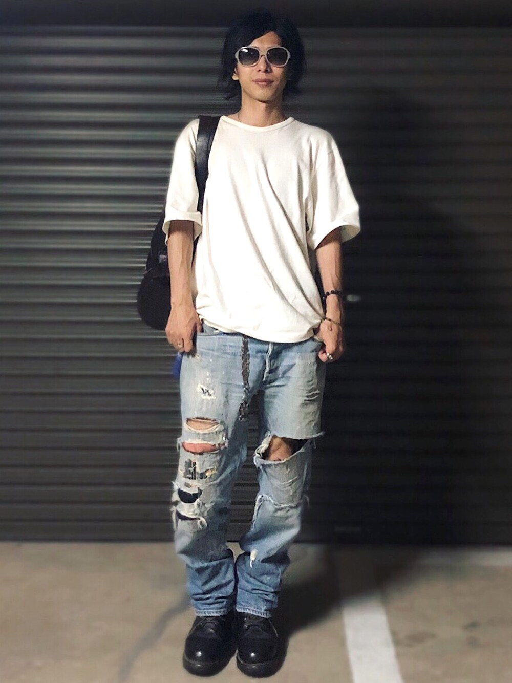白Tとダメージデニムの相性は最高。 ゆる過ぎず、程よい感じのオーバーサイズが リラックスしたムードに。