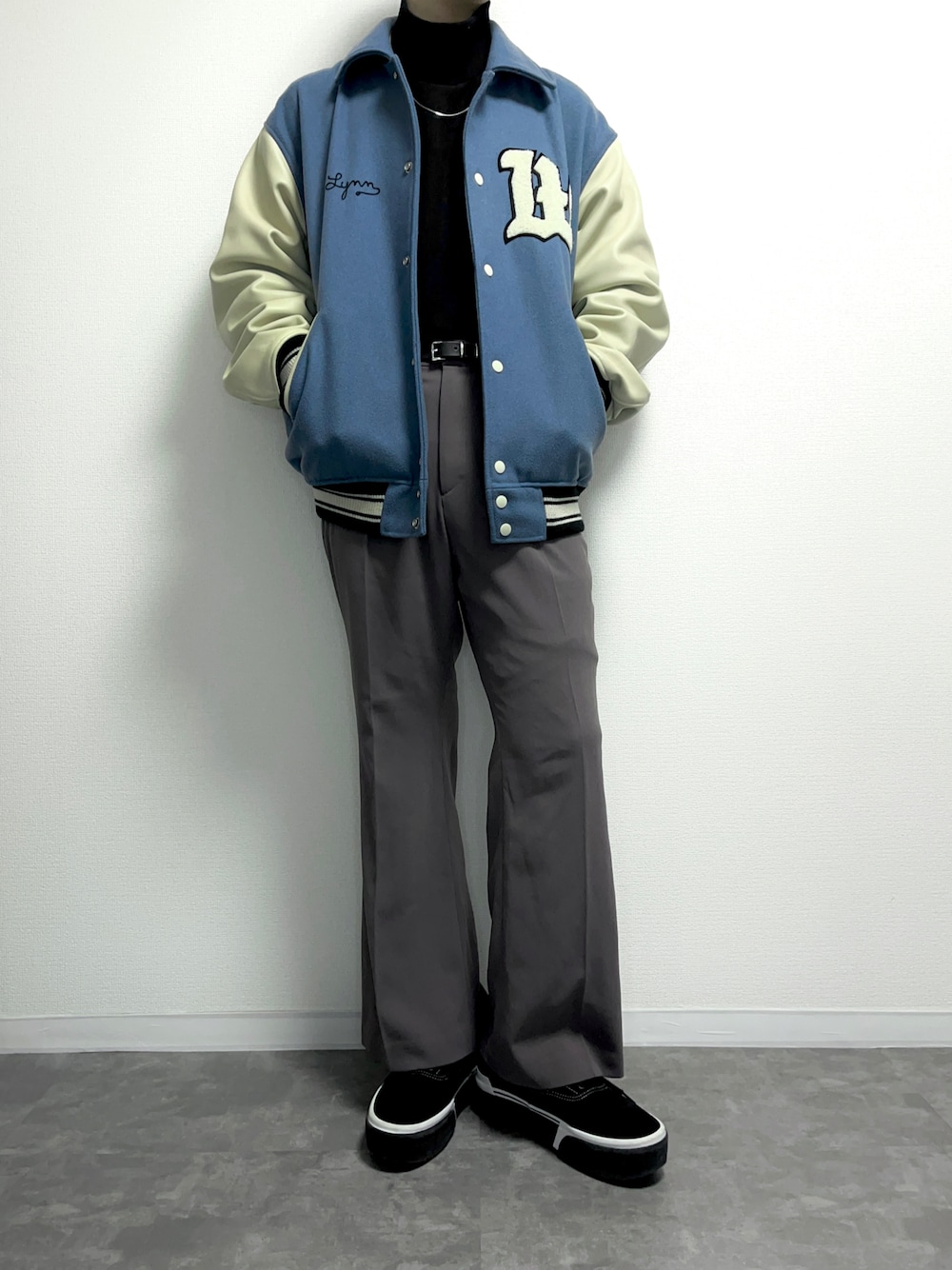 𝐘𝐮𝐦𝐚.のスタジャン「<SKOOKUM × monkey time> MLTN NVSTY JKT/ヴァーシティジャケット」を使ったコーディネート