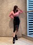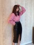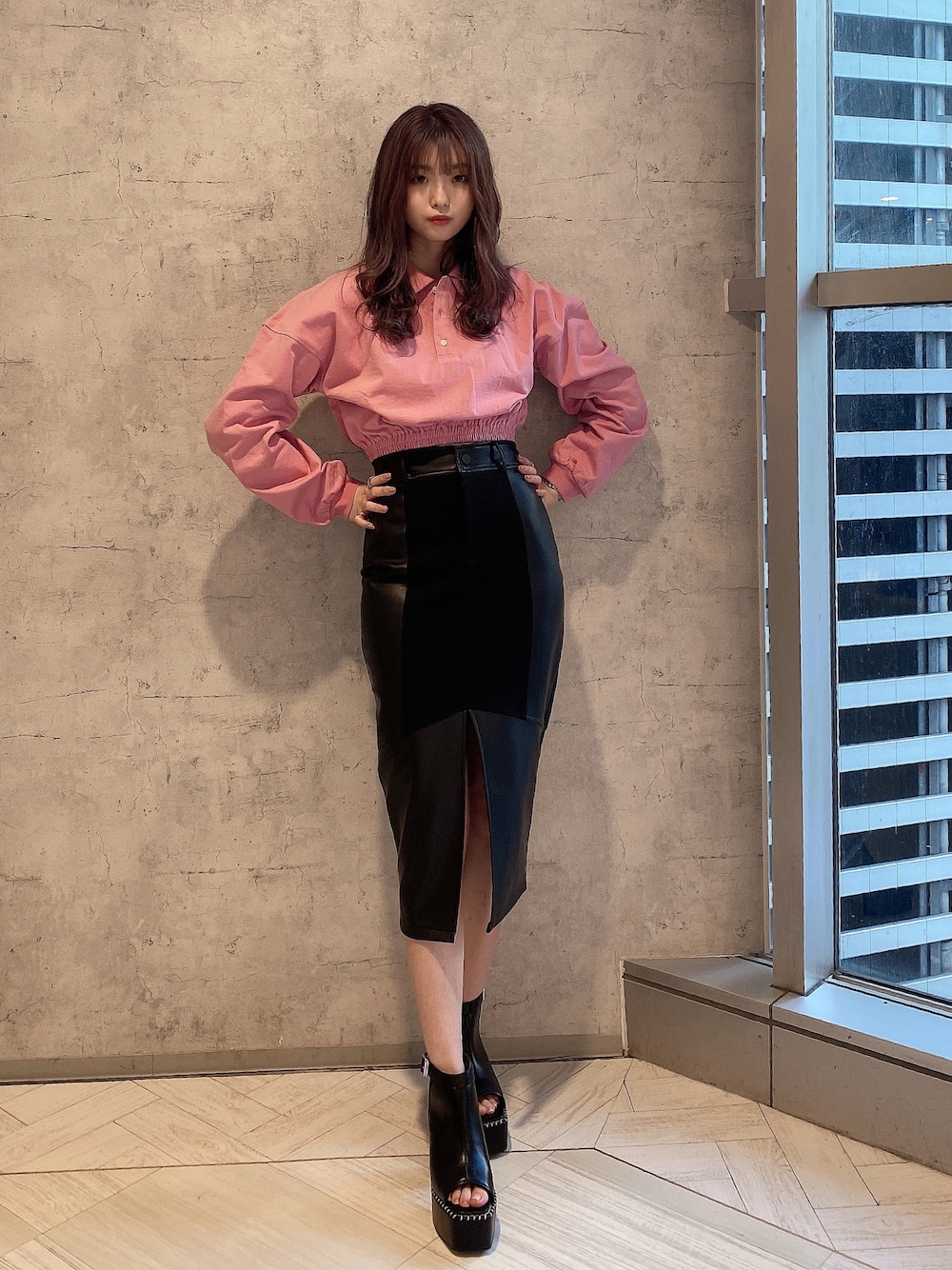 タイトのレザースカート可愛い😎💖 ショート丈のトップスと合わせて脚長効果🙆🏼♀️🙆🏼♀️
