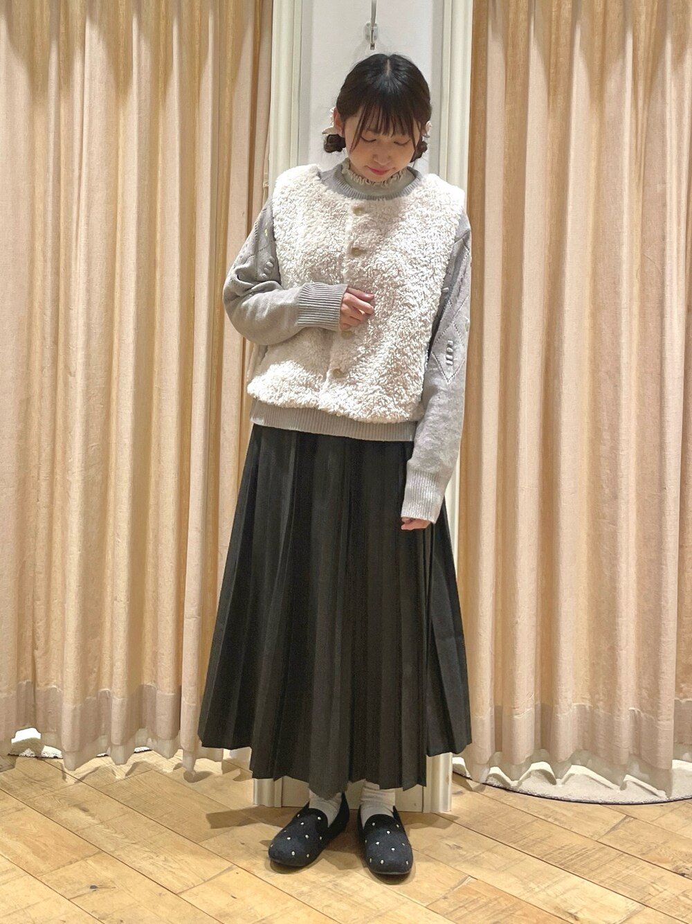 ゆいのスカート「【帯電防止】TR無地プリーツスカート」を使ったコーディネート
