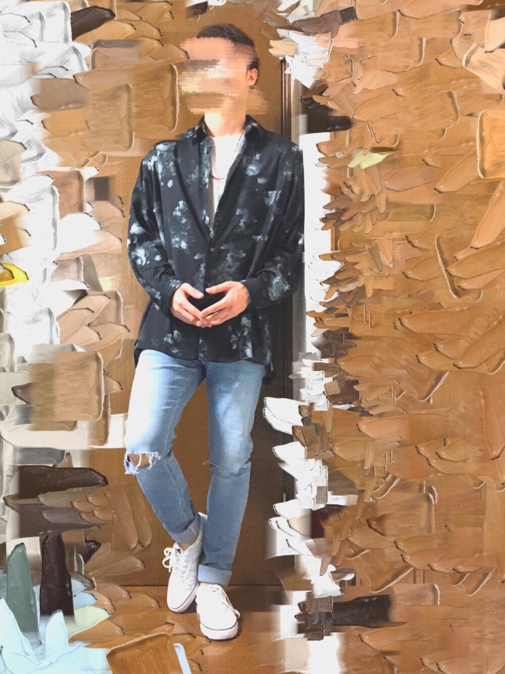 みゅーたのシャツ/ブラウス「【STUDIOUS】ダークフラワービッグシルエットシャツ」を使ったコーディネート