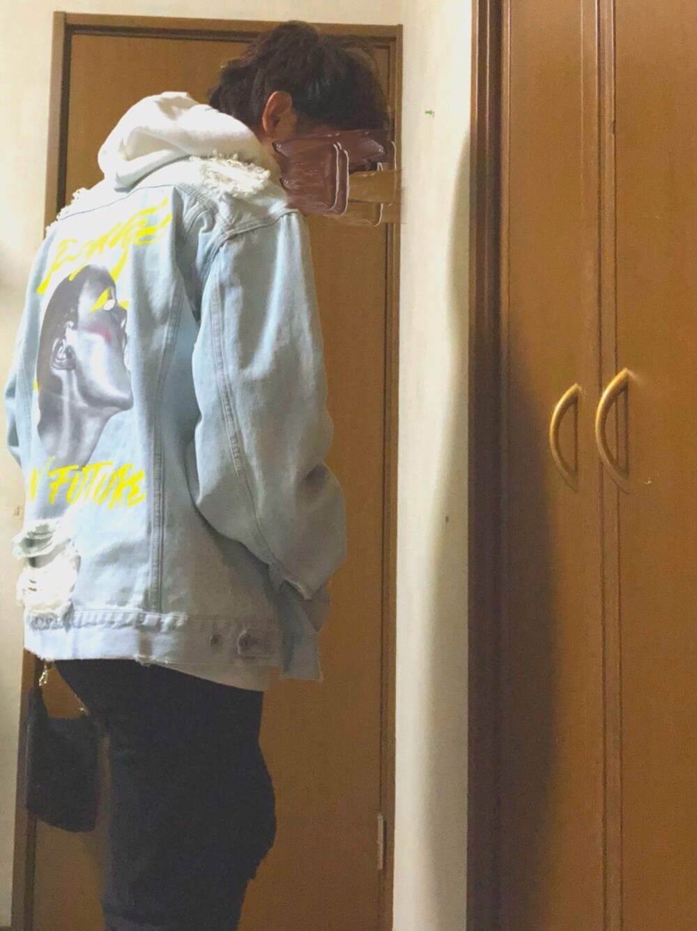 バックプリントがかっこよすぎる!!! 若干イカツイ感じ(?)出ちゃう気がしたからパーカーで可愛く。