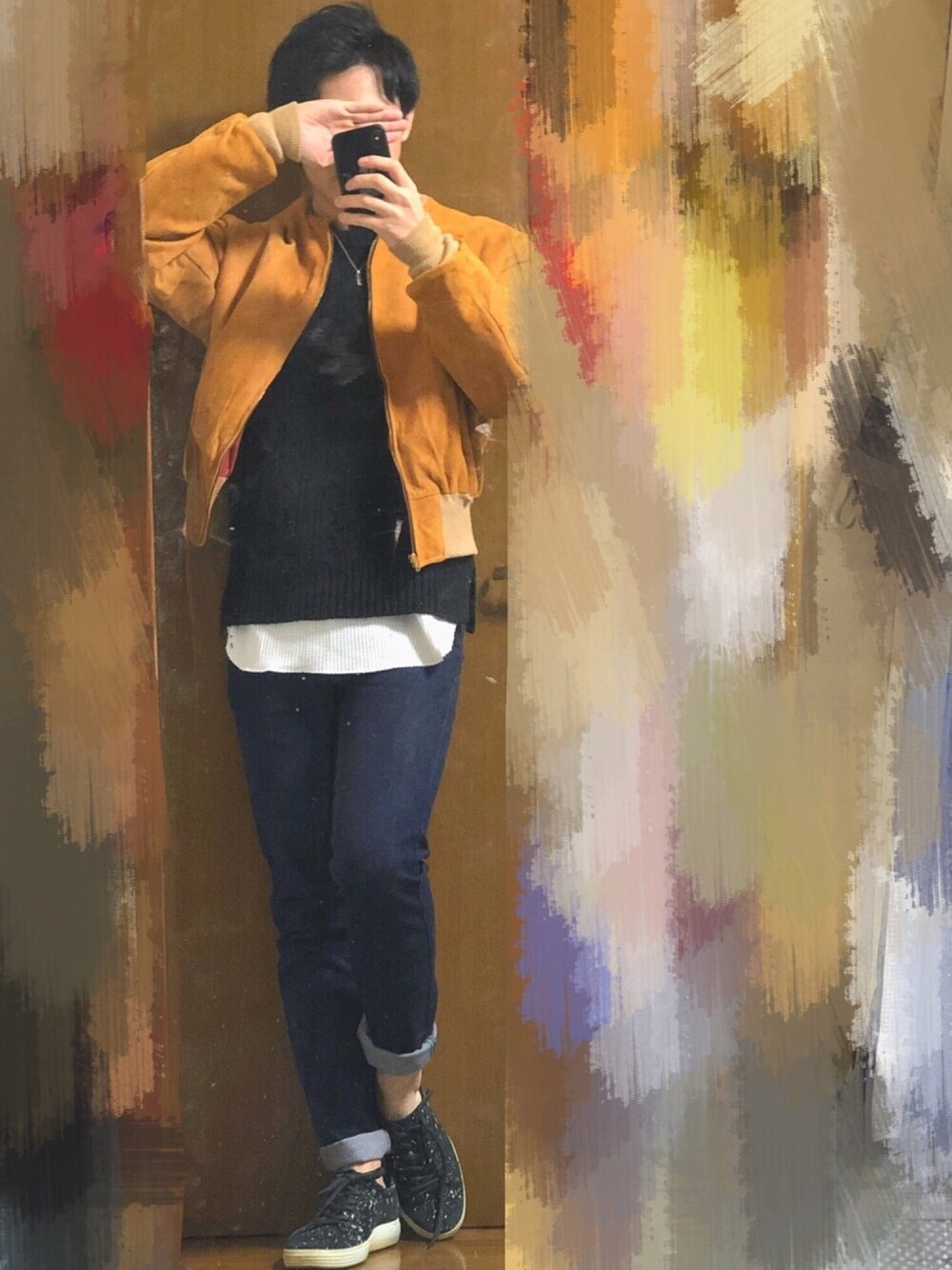 高校生の時に買ったWEGOのアイテムは何だかんだ今も使ってます。 スウェードのブルゾンを古着屋さんで買いましタ。ヴィンテージ感がかっこいいので気に入っています😍