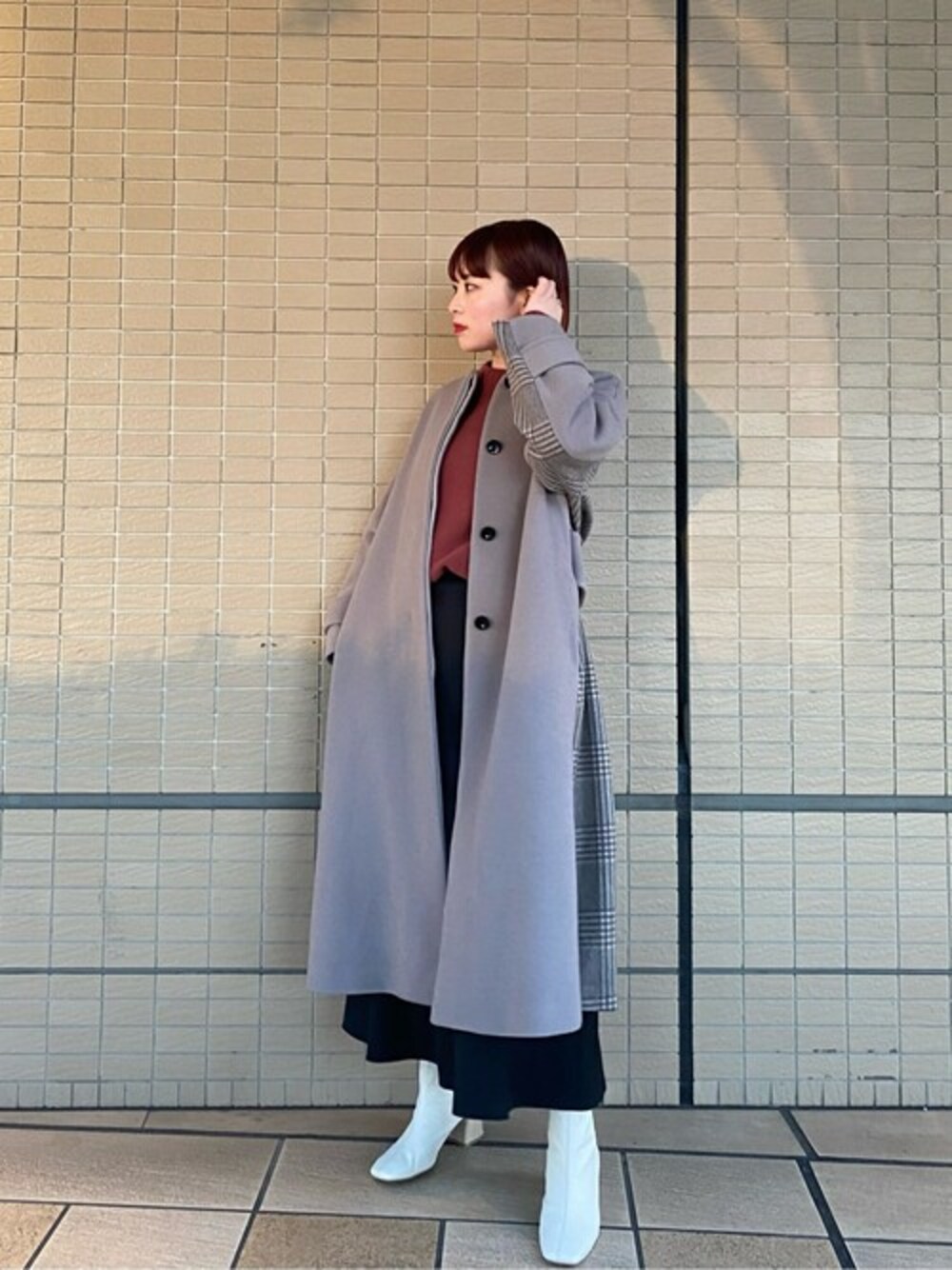 mizuho(UNITED TOKYO EC事業部 W)のブーツ「バイカラースクエアショートニュアンスカラーブーツ」を使ったコーディネート