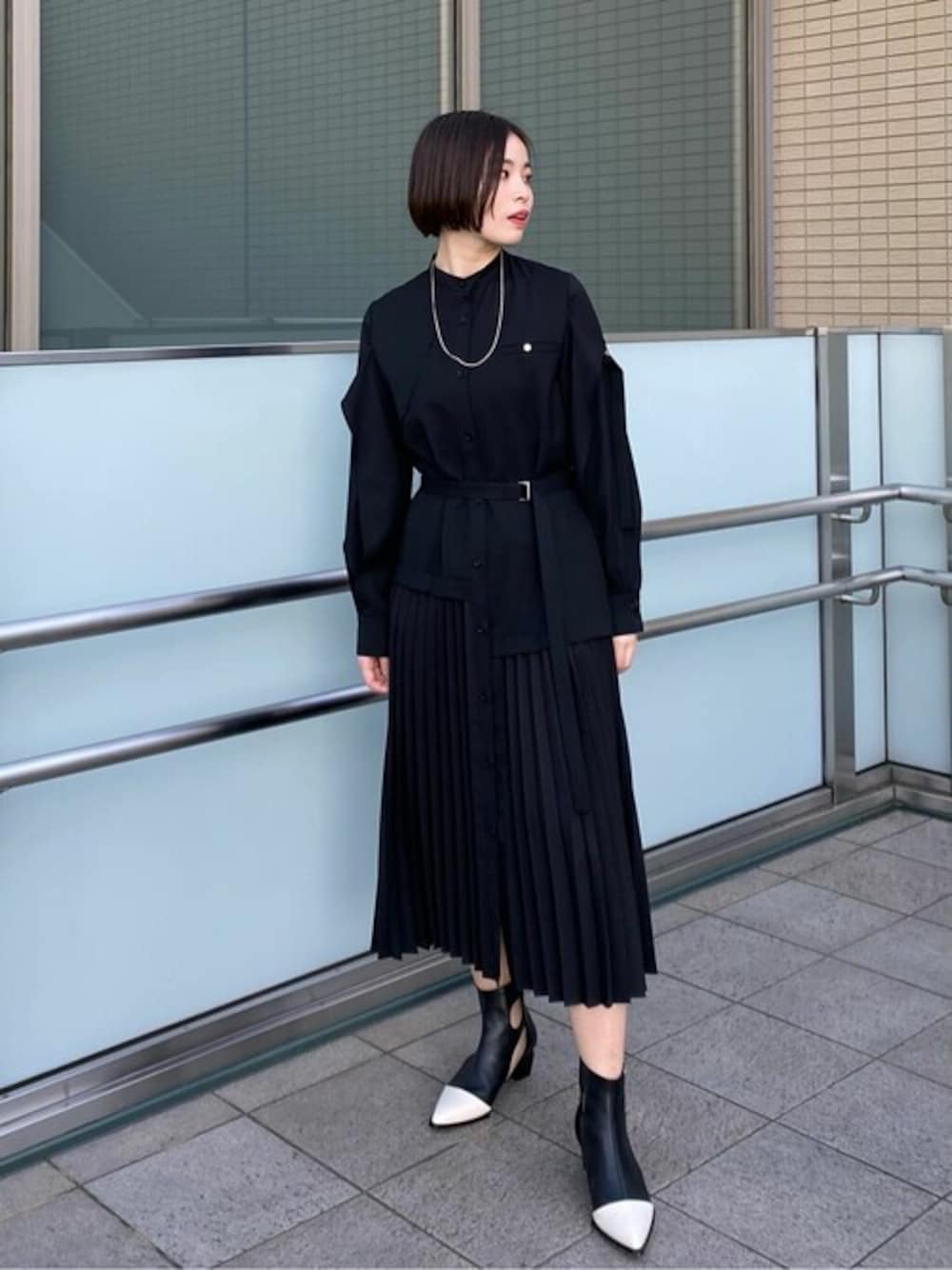 mizuho(UNITED TOKYO EC事業部 W)のワンピース「ステアーズコンビワンピース」を使ったコーディネート