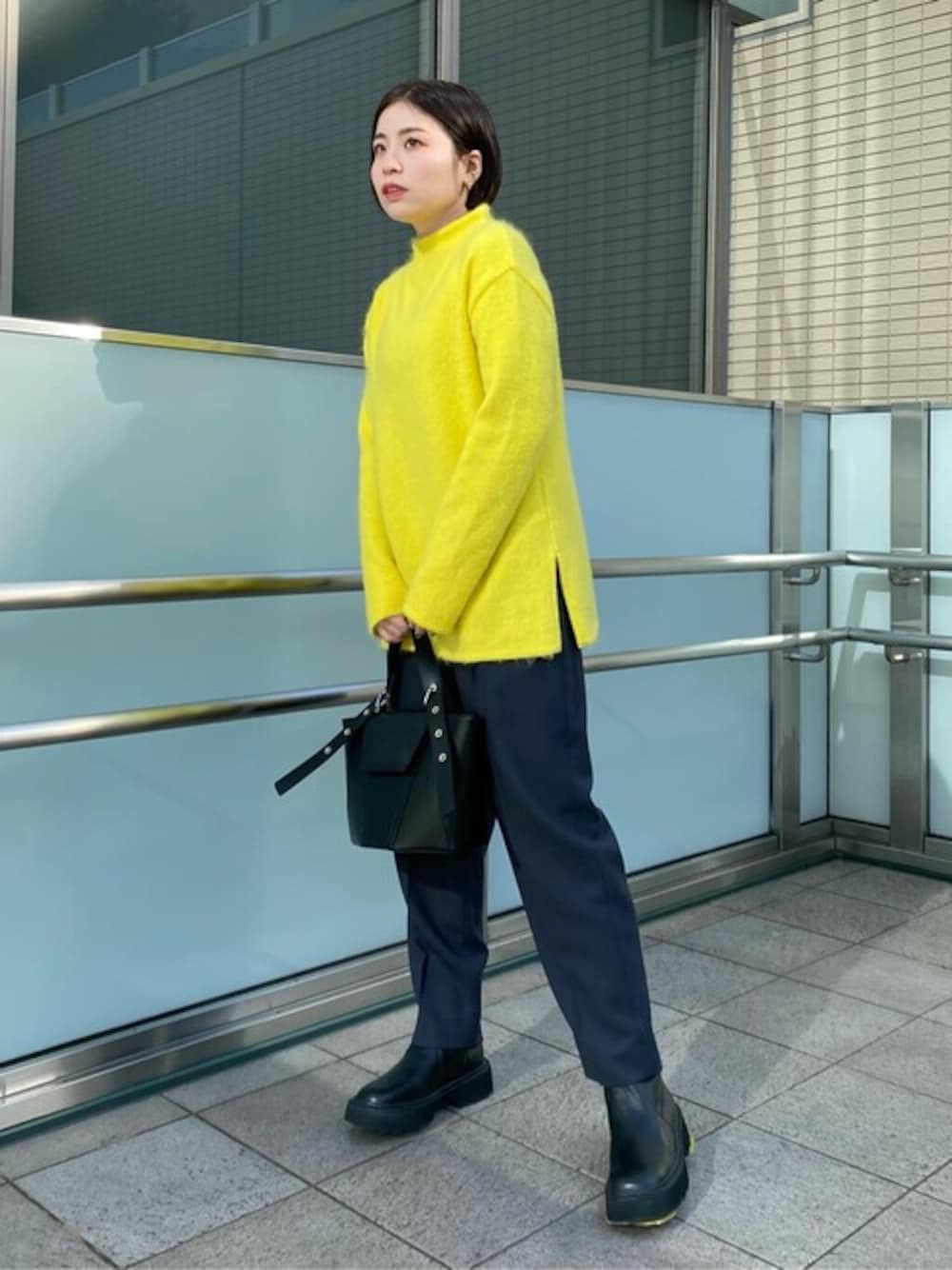 このモヘアのイエローニットが可愛すぎる…!!キレイめスタイルに合わせるのが好き! チクチクしにくいところも魅力的