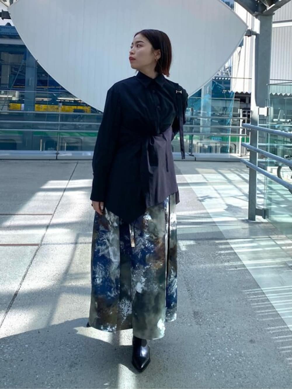 柄スカートが今年も可愛い。 シャツをアウトで着ても綺麗めになりすぎずで、好きなスタイルです!