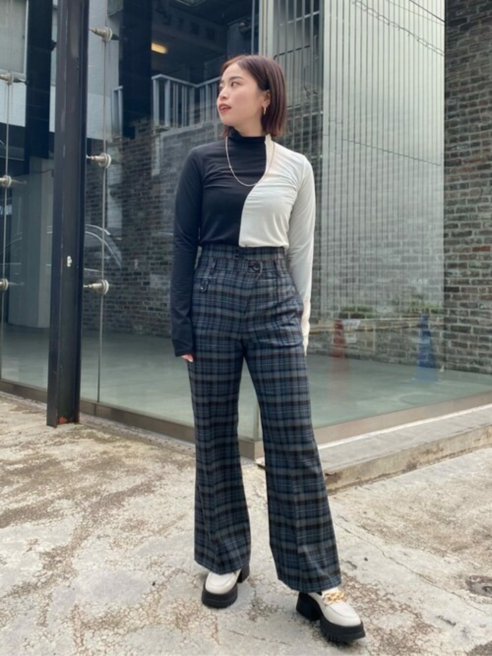 mizuho(UNITED TOKYO EC事業部 W)のスラックス「ベルフレアパンツ」を使ったコーディネート