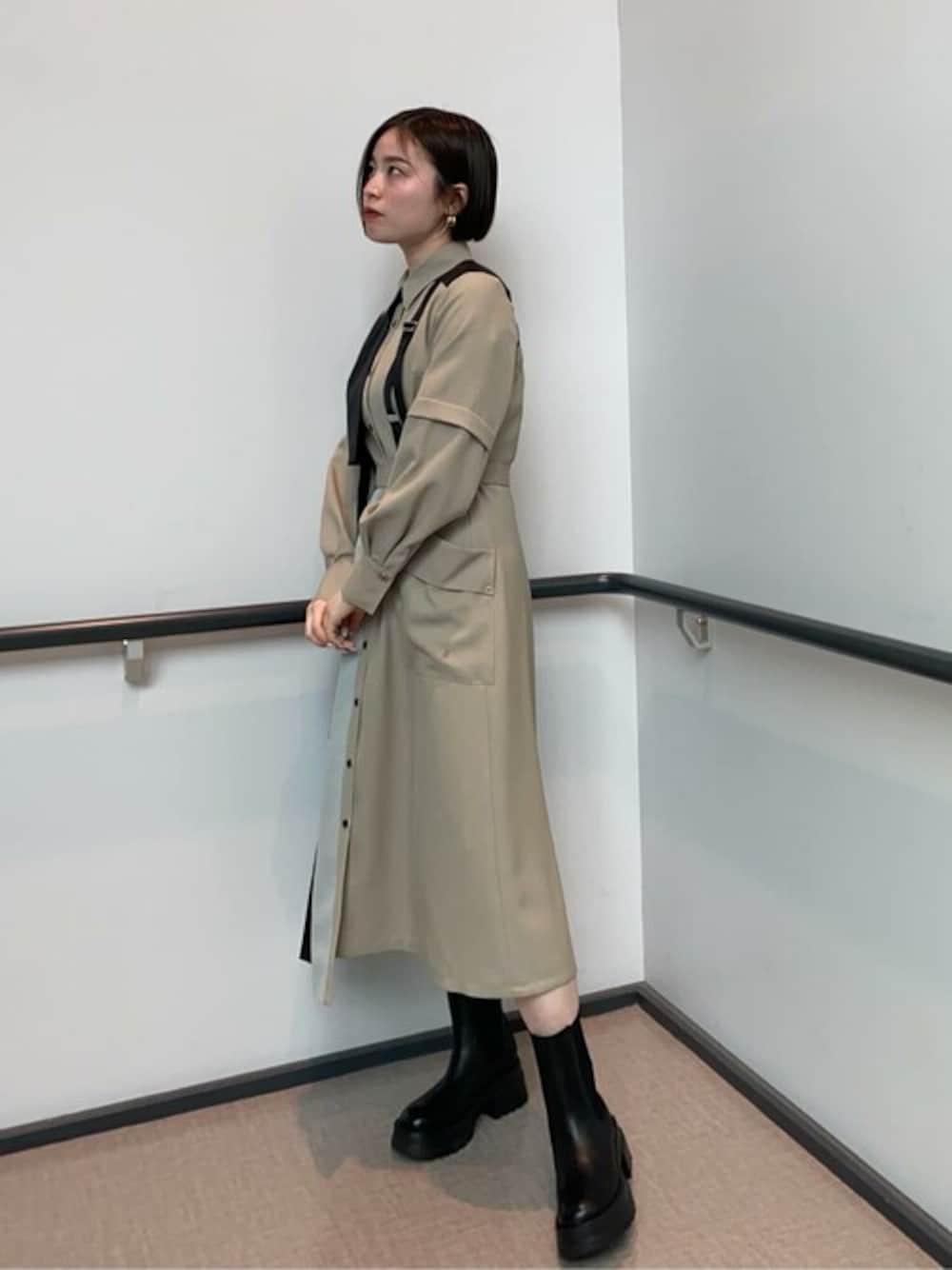 mizuho(UNITED TOKYO EC事業部 W)のワンピース「ダブルベルトシャツワンピース」を使ったコーディネート