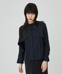 こちらのブラウス、コンパクトに着れるのでケープデザインでも可愛らしくなりすぎずモードに着て貰えます!
