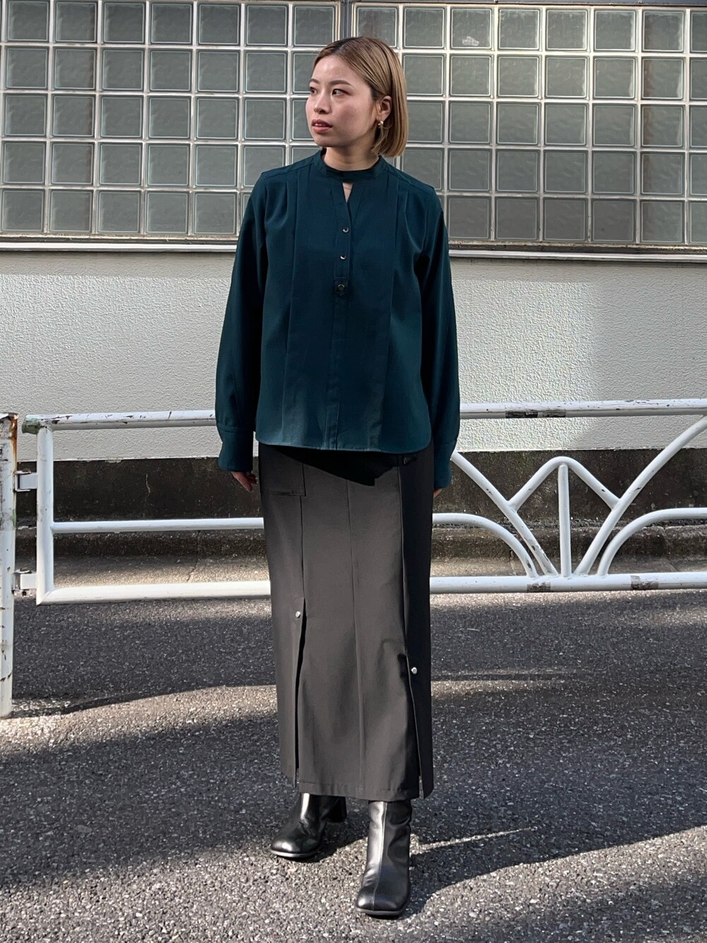 オフィスカジュアルにもおすすめなコーディネート。ブラウスのゴールドのボタンがアクセントのになっていて可愛いです◎ベーシックなパンツやスカートでインアウト気にせず着られるところも嬉しいポイント。