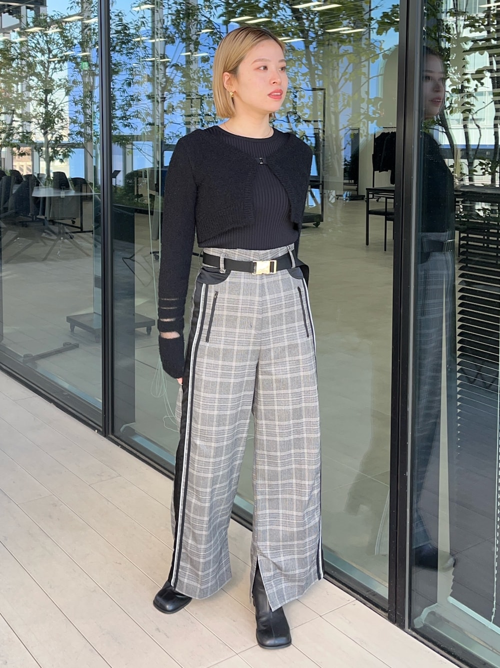 美シルエットラインパンツ。チェック×ラインが新しい…! 綺麗目にもカジュアルにもどちらでも合わせられるアイテムです◎