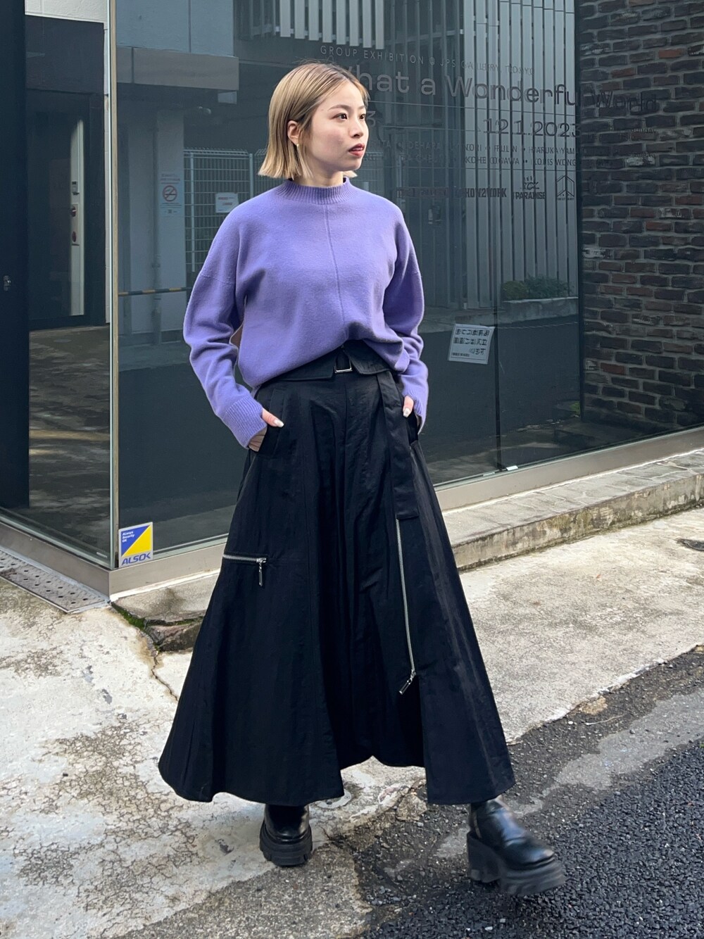 カシミヤ混ニット、今年も可愛すぎるカラーで出ました◎ 丸みのあるシルエットが、オーバーサイズながら女性らしさを引き出してくれます。スカートはウエスト部分折り返せるのでニットでも合わせやすいです。