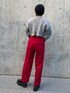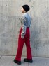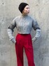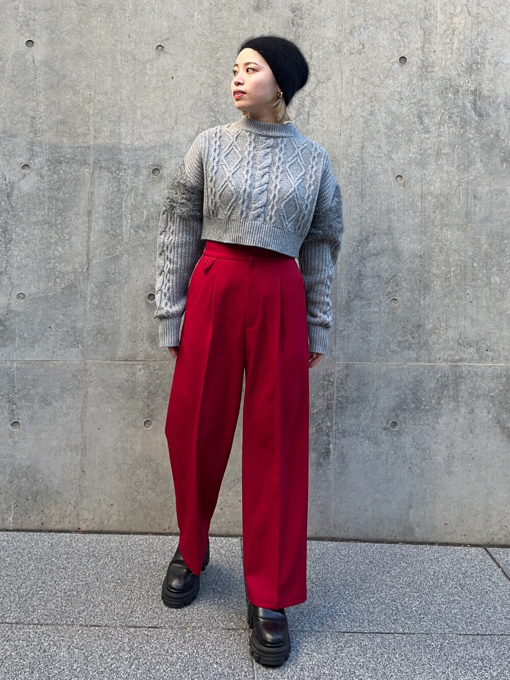 グレー×赤の組み合わせが可愛い◎ シルエットと履き心地最強のパンツは、一度履いてみて欲しいです。 冬のカラーパンツスタイリングおすすめです。
