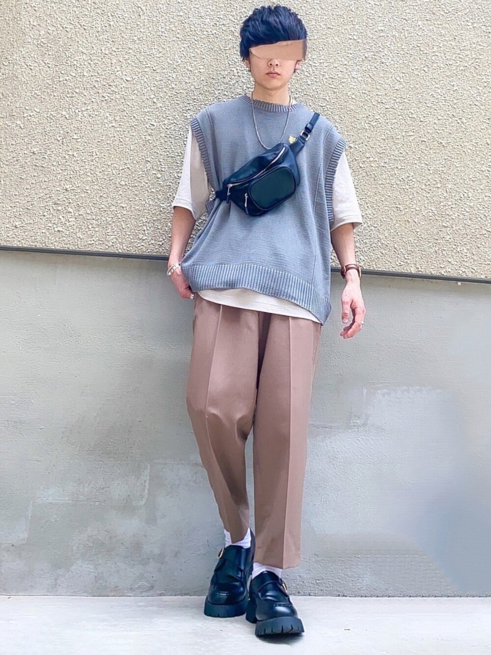 Tenshinのベスト「ダメージサマーニットベスト」を使ったコーディネート