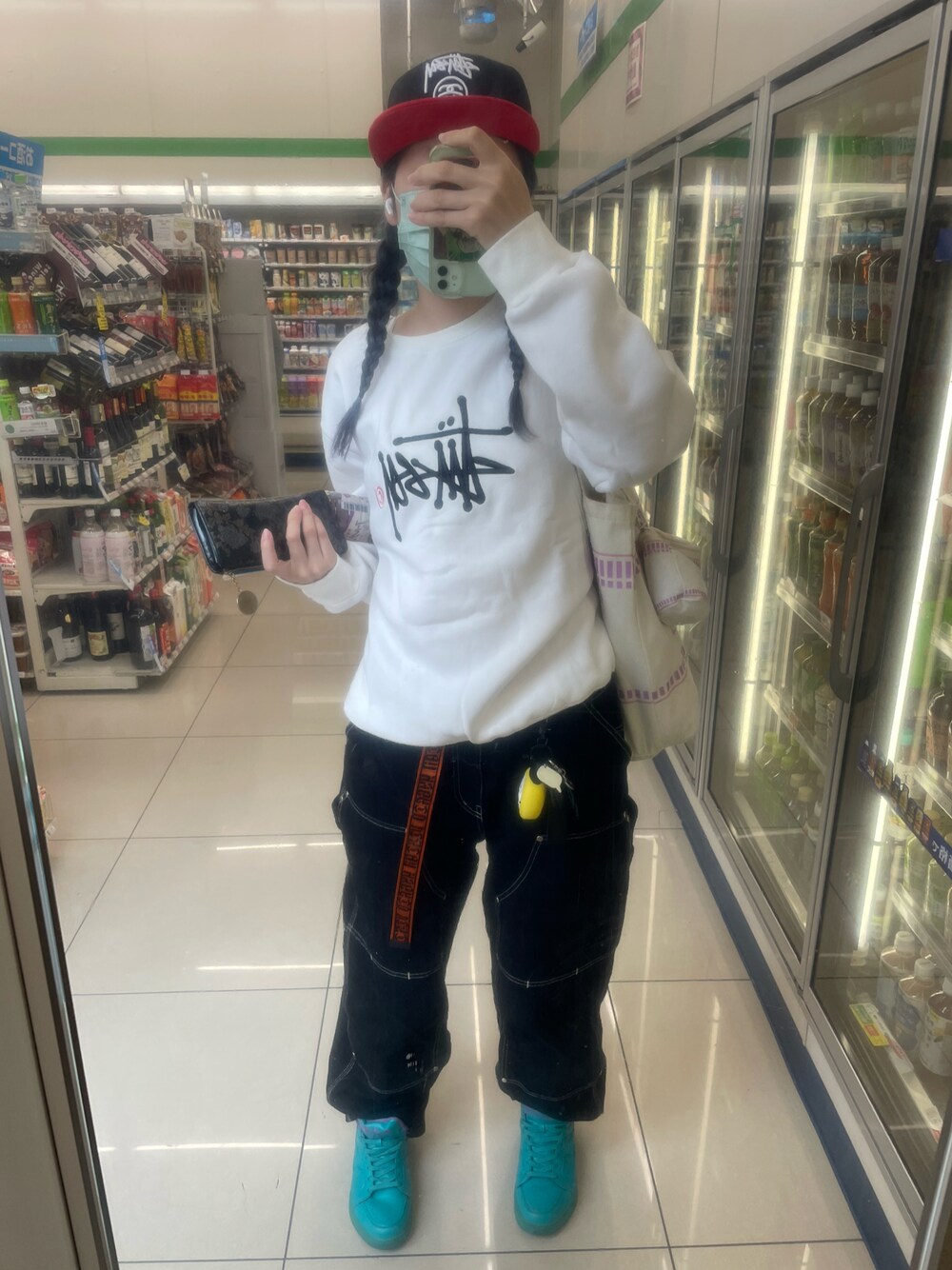 原宿の黒人さんのお店で買った奴まだ着てなかったから今日寒いし着た🥶 さすがに赤のシャカパンはダメだと思うからやめたよ👍🏻笑笑 255/365
