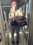ブラック系のスニーカー、ピンク系のニットキャップ/ビーニーを着用したレディースの冬コーディネートの2枚目の写真