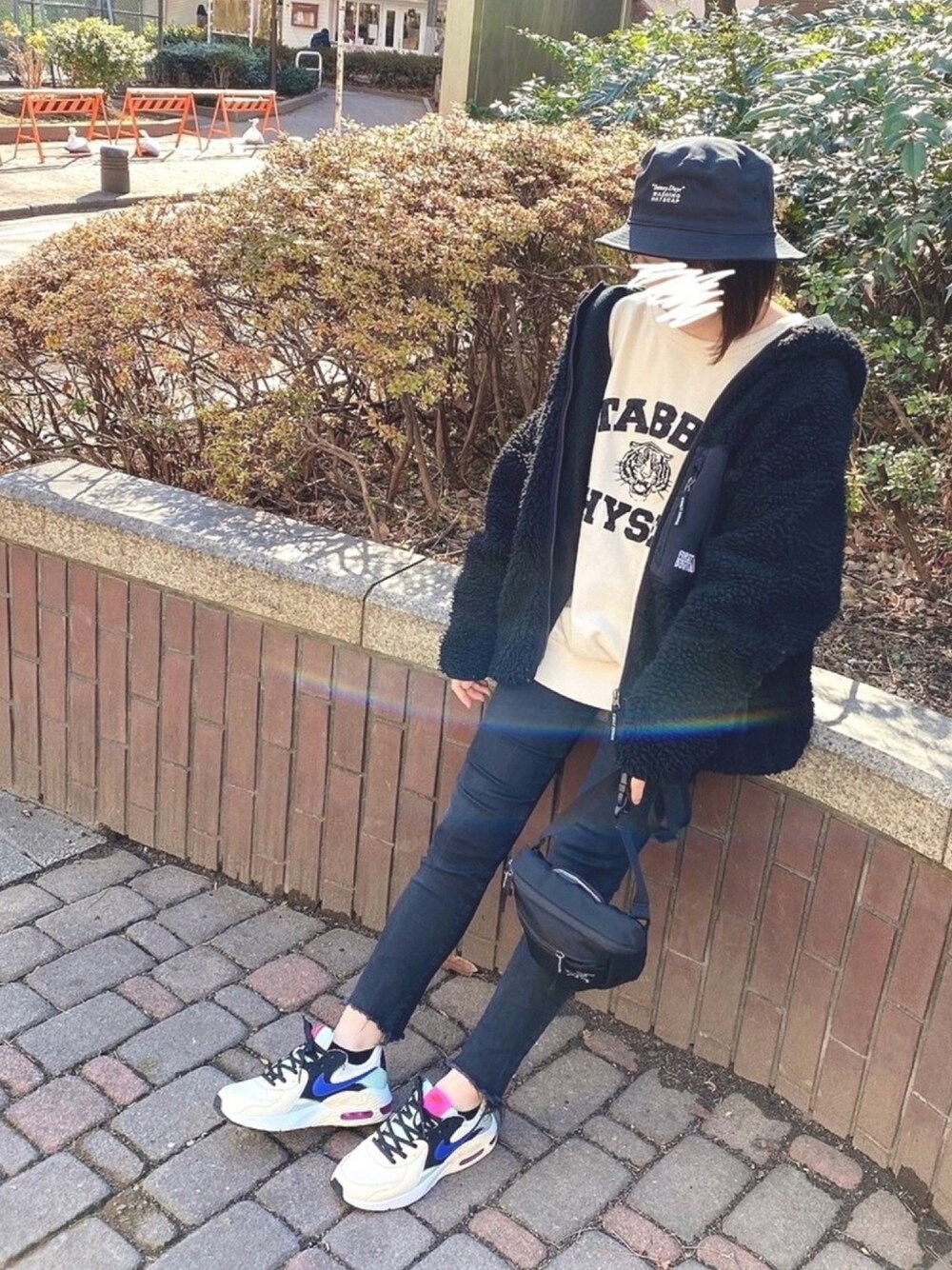 芽のブルゾン「FIRST DOWN/ファーストダウン 別注ボアフリースブルゾン(ボアコート、ボアアウター、スタンドカラー)」を使ったコーディネート