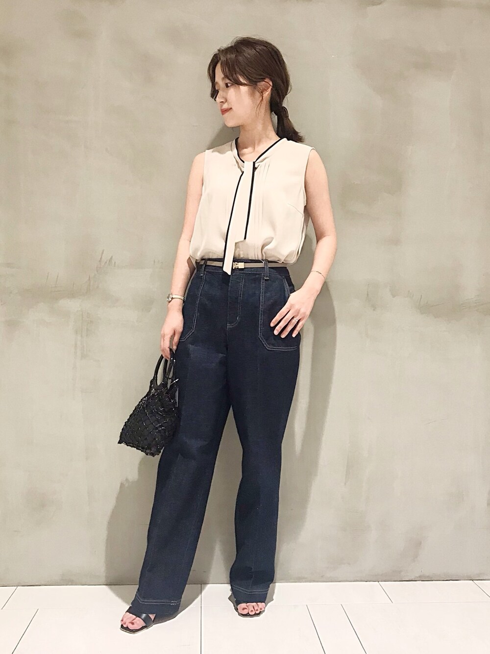 きれい見えするブラウスをデニムでカジュアルダウン☺︎ スカートなど合わせるとお仕事にもオススメですが、休日にはデニム合わせでラフに着るのも印象が違って見えますよ♡